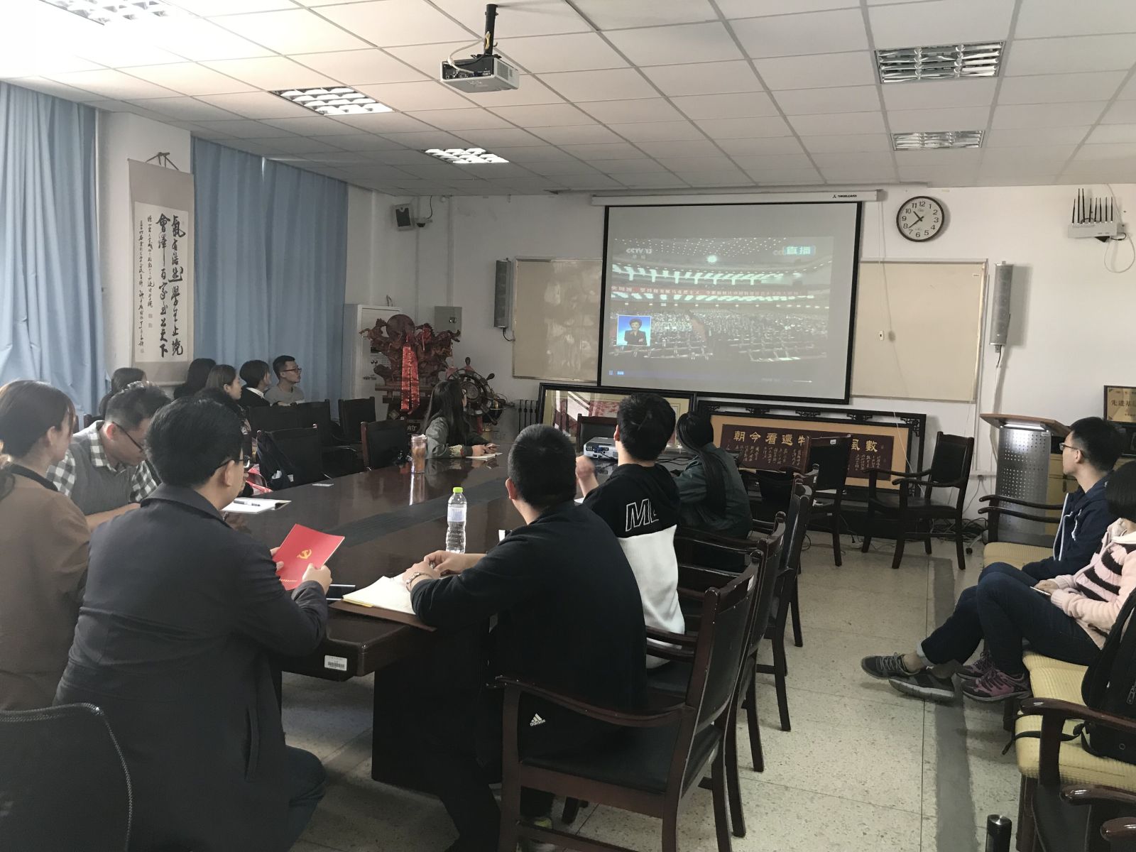 本站讯 5月4日上午十时,爱游戏ayx官网组织学生党员于图东环楼208室集中收看纪念马克思诞辰200周年大会,认真聆听习近平总书记在纪念大会上的重要讲话。辅导员赵德豪、王祎璠一同观看。