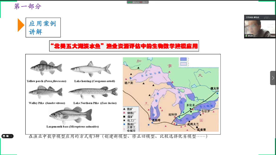 廖宝超是中国海洋大学和美国弗吉尼亚理工大学联合培养博士,主要从事生物数学、数学建模、渔业种群动力学研究,承担国家重点研发计划子项目1 项、省部级项目4项,已在 STOCH ENV RES RISK A, FISHERIES MANAG ECOL 和 J MAR BIOL ASSOC UK 等国际知名刊物上发表多篇 SCI 论文。在该次活动中, 廖宝超以“数模在海洋渔业管理中的应用”为主题作学术报告。他首先向大家介绍了数学模型的定义及应用,并通过如何区分“乌贼、章鱼、鱿鱼”这一有趣的问题穿插引出了此次报告的主要内容。此次报告主要分为三大部分:北美洲淡水渔业资源评估、环渤海渔业资源评估以及工作的未来展望。廖宝超欢迎更多的师生加入到这项课题研究中,指明了课题研究所需要的理论知识和编程方法。宋慧敏、张旭等与会老师针对报告内容展开了交流和分享。