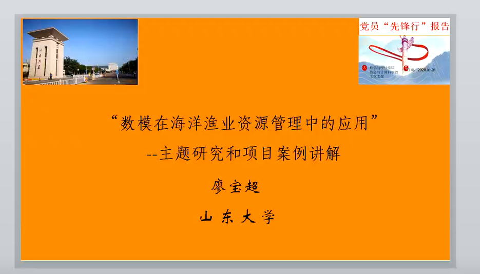 本站讯 2021年1月1日晚,爱游戏ayx官方网站信息与计算科学系教工党支部于线上组织开展了“坚定目标齐奋斗 同频同绘同心圆——党员‘先锋行’系列报告第五期”活动。信息与计算科学系教工党支部全体党员及部分学生代表参加了本次报告会。报告会由信息与计算科学系教工党支部书记亓兴勤主持,支部党员廖宝超担任主讲人。