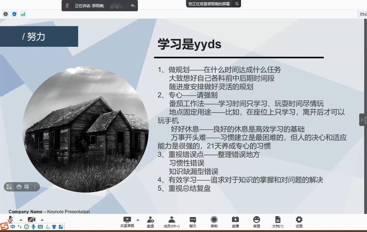 活动伊始,魏佳佳向大家介绍八位进行经验分享的嘉宾。经验分享环节中,夏炳权和郭雨萌从考研选择、心态等方面与大家分享了自己的经验,重点分享了考研学习方法和时间规划等内容,建议同学们调整好心态,踏实认真。随后,孙铭、魏佳佳、李雪彤、殷子涵分别对支教保研、保资辅导员政策、成绩保研以及单列保研四个方面进行了讲解分享,鼓励同学们可以选择不同保研路径,低年级同学积极参加各项科创实践、社会服务活动,为自己创造更多选择机会;大三同学重点关注最后一学期的学习,保研边缘的同学做好保研考研的两手准备。紧接着,张一凡和白家野分别对出国、考公经验进行了分享,提醒同学们要尽早准备,认真对待。最后,魏佳佳总结发言,她希望同学们认真做好自己的未来规划,在面临选择时认清自我,不盲目跟风,调整心态;确定目标后应迎难而上,脚踏实地,为自己的目标不懈努力。