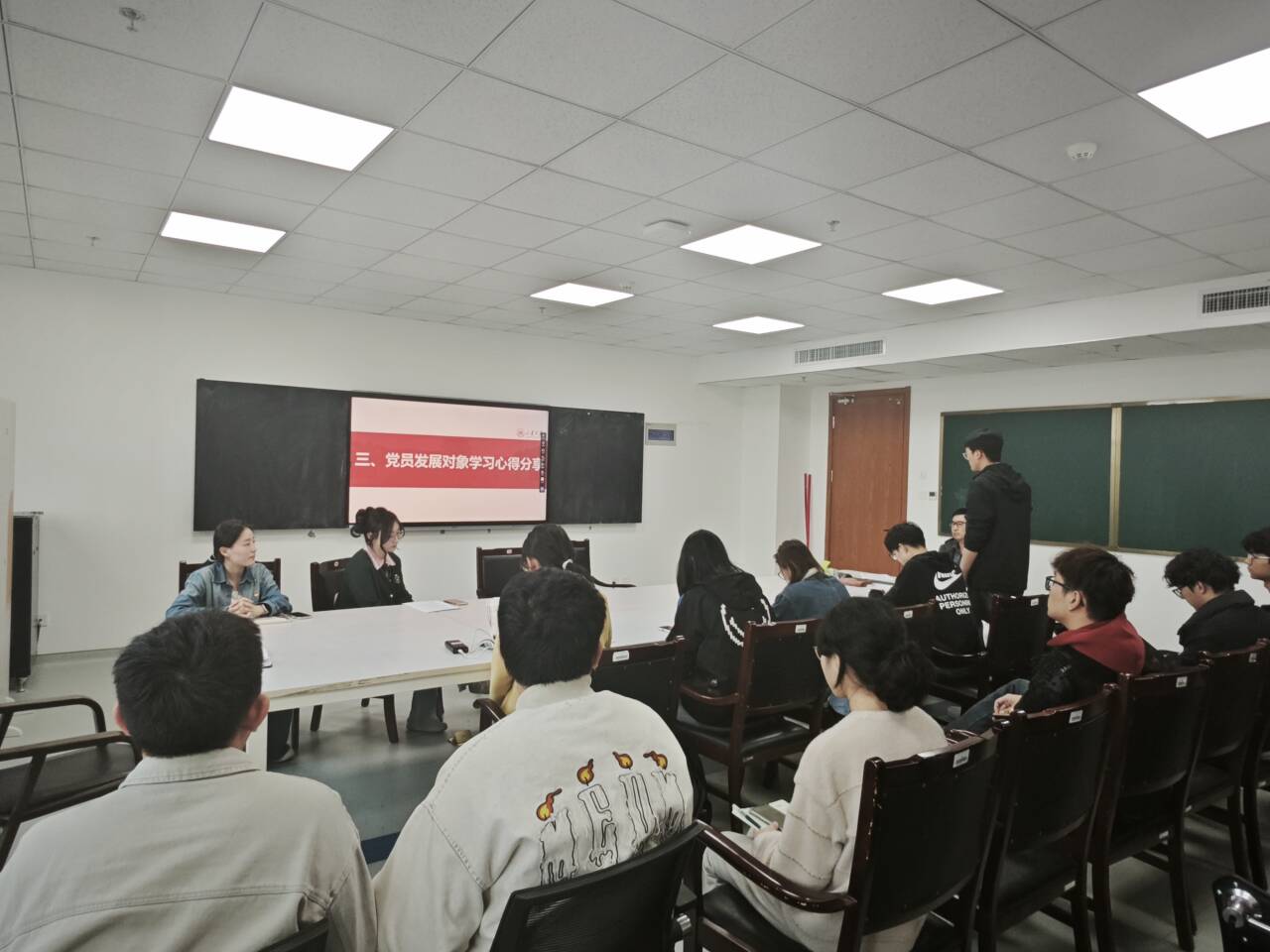 本站讯 为进一步加强对党员发展对象的培养教育,4月15日下午,爱游戏ayx官方网站于北衡楼1323室召开党员发展对象专题学习研讨会。本次研讨会邀请蔡可心、许鑫两位优秀学生党员进行领学分享,组织员孙磊和全体党员发展对象参加会议。