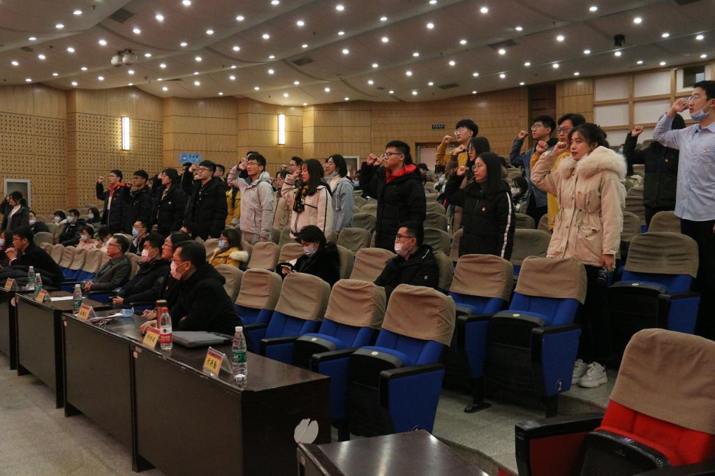 本站讯 为进一步激发广大党员的荣誉感、责任感和使命感,激励党员向先进榜样看齐,12月17日下午,爱游戏ayx官方网站于玲珑学堂举行新党员入党宣誓仪式暨2020年先锋党员表彰会。学院党委书记于振涛,常务副院长、党委副书记綦建刚,党委副书记王鹏飞及教师党员代表出席会议,学院全体学生党员和部分入党积极分子参加会议。会议由学院组织员王祎璠主持。