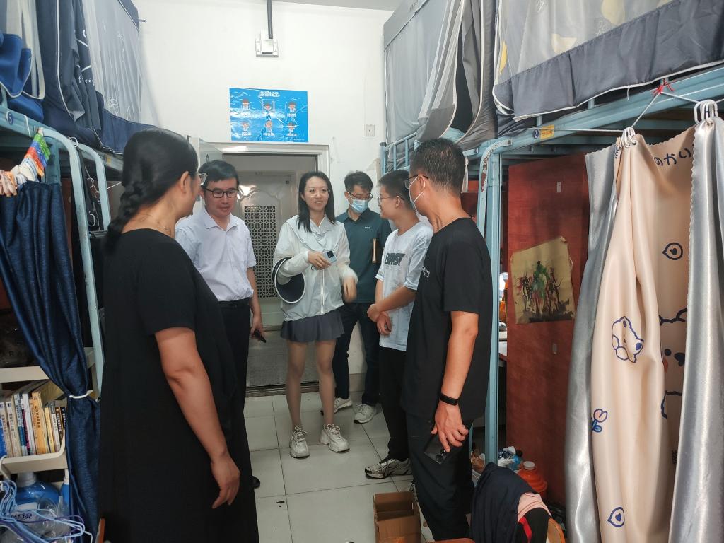 加强组织领导,深入学生一线。学院坚持“服务学生健康成长发展”的工作理念,将主题教育与学生思想教育相结合,与解决学生实际问题相结合。学院领导班子靠前指挥,深入一线,各年级辅导员加强关注,做到关怀到位、反馈及时,切实解决学生实际困难。8月2日,学院党委书记于振涛、副书记王鹏飞带队,学工队伍全体教师走访慰问暑期留校学生,开展学生公寓、自习室、讨论室安全检查,全面掌握留校学生学习生活情况和思想动态,叮嘱学生提高安全意识,注意用电安全,做好各类安全防范工作。