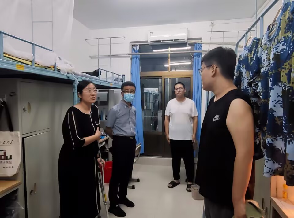 “家是哪里的”“对气候适应吗”“食堂饭菜是否可口”“是否已经熟悉宿舍同学”......学院一行逐一走访22号楼新生宿舍,每到一个宿舍,学院领导都与新生亲切交谈,了解同学们报到期间的趣闻乐事,围绕校园生活、学习规划、创新活动、个人发展等话题,与新生深入互动。于振涛代表学院对新生的到来表示热烈欢迎,叮嘱同学们尽快熟悉大学环境,为即将开展的新生军训做好充足准备,鼓励同学们确立符合自身实际的发展目标,积极参加学校各项活动,珍惜时间、热爱生活、立志成才,做到德智体美劳全面发展,不负青春韶华。
