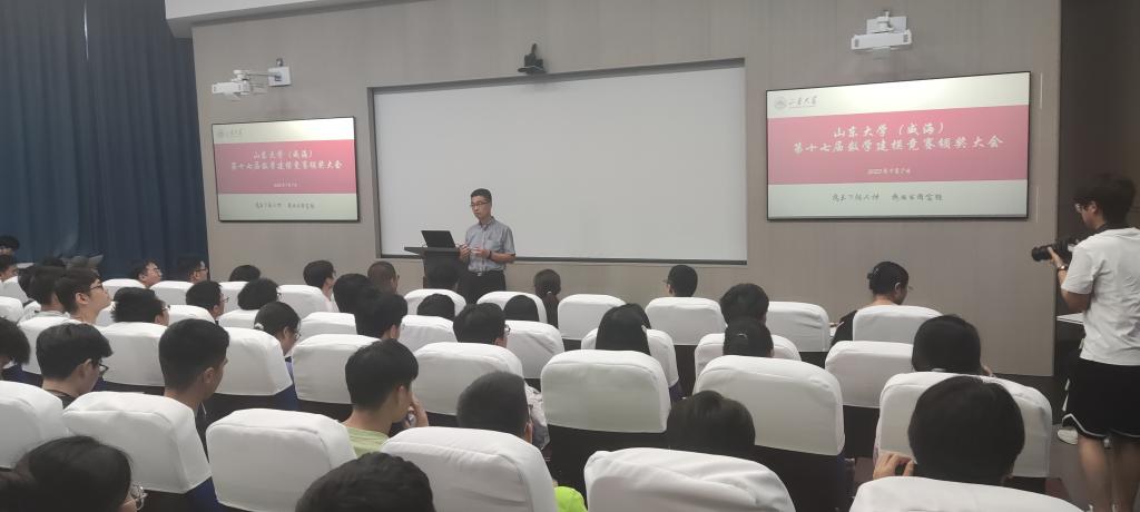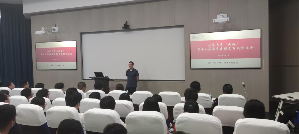 2023年9月7日下午,爱游戏ayx官方网站在网络楼报告厅召开了2023年爱游戏ayx官方网站(威海)第十七届数学建模竞赛颁奖大会暨2023年全国大学生数学建模竞赛动员大会,对在前期校级数学建模竞赛中获得一等奖的同学进行了表彰。奖品赞助企业中科曙光高性能计算集群事务部总经理卜景德、学院党委书记于振涛、副书记王鹏飞、副院长亓兴勤、学院数学建模负责人曹祝楼及王育松出席会议,爱游戏ayx官方网站(威海)第十七届数学建模竞赛获奖学生参加了会议。