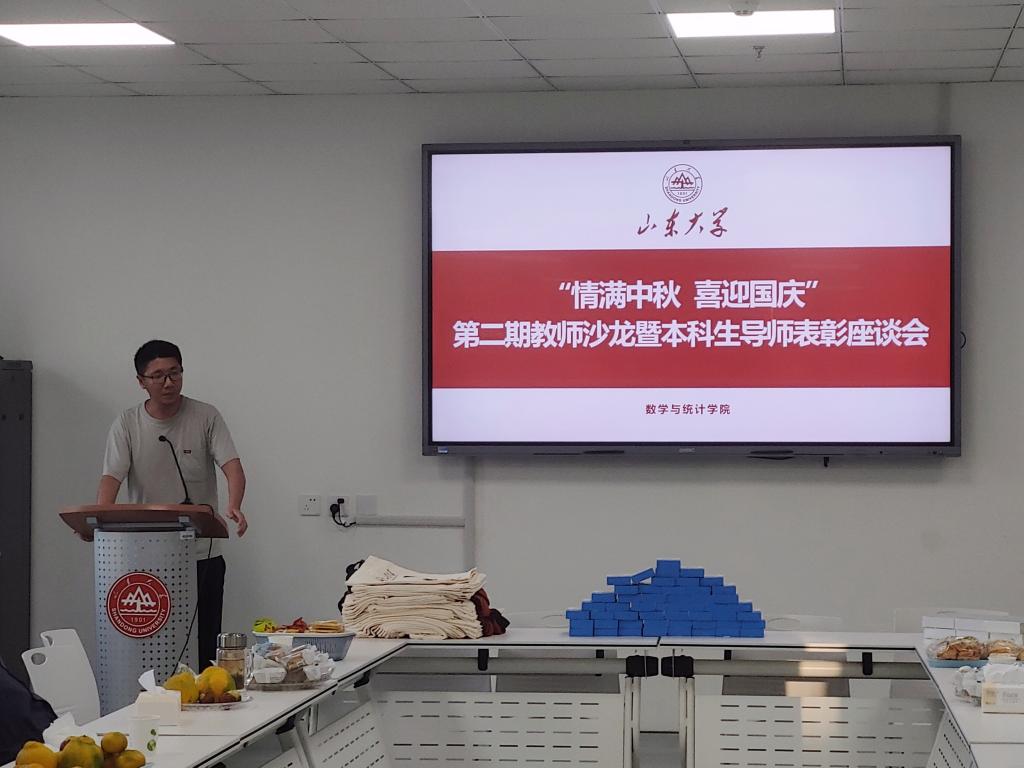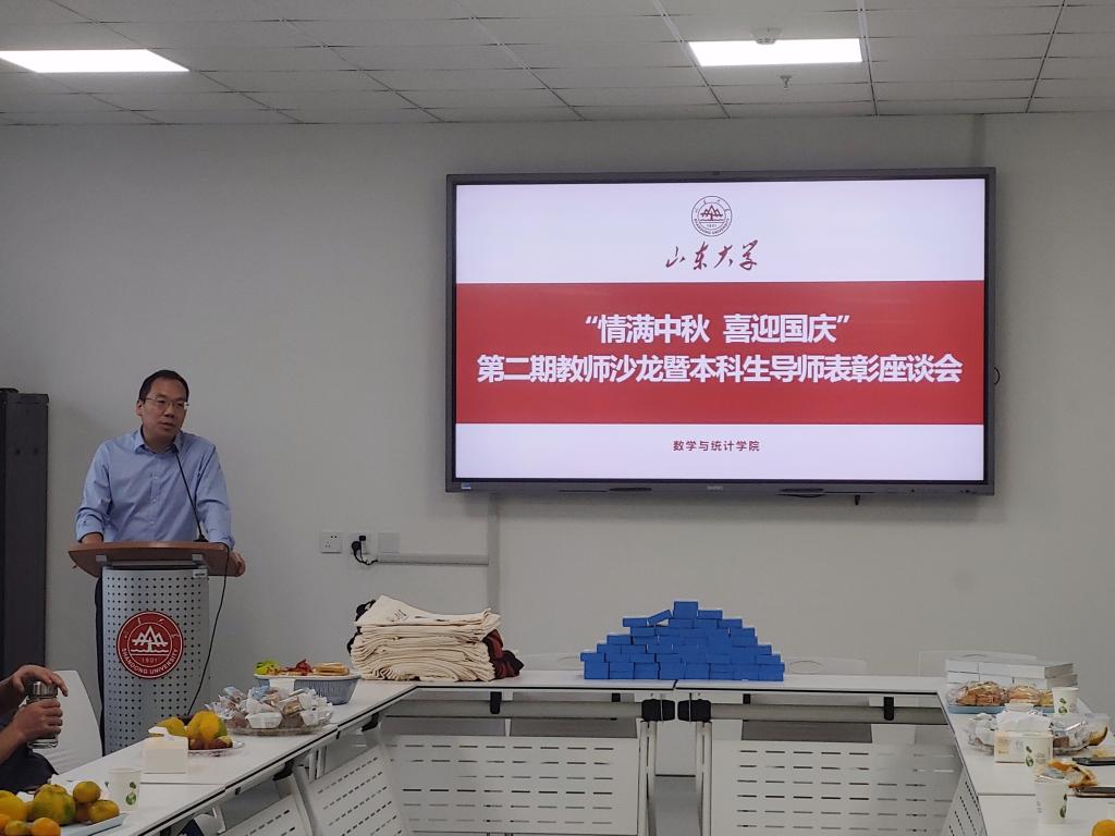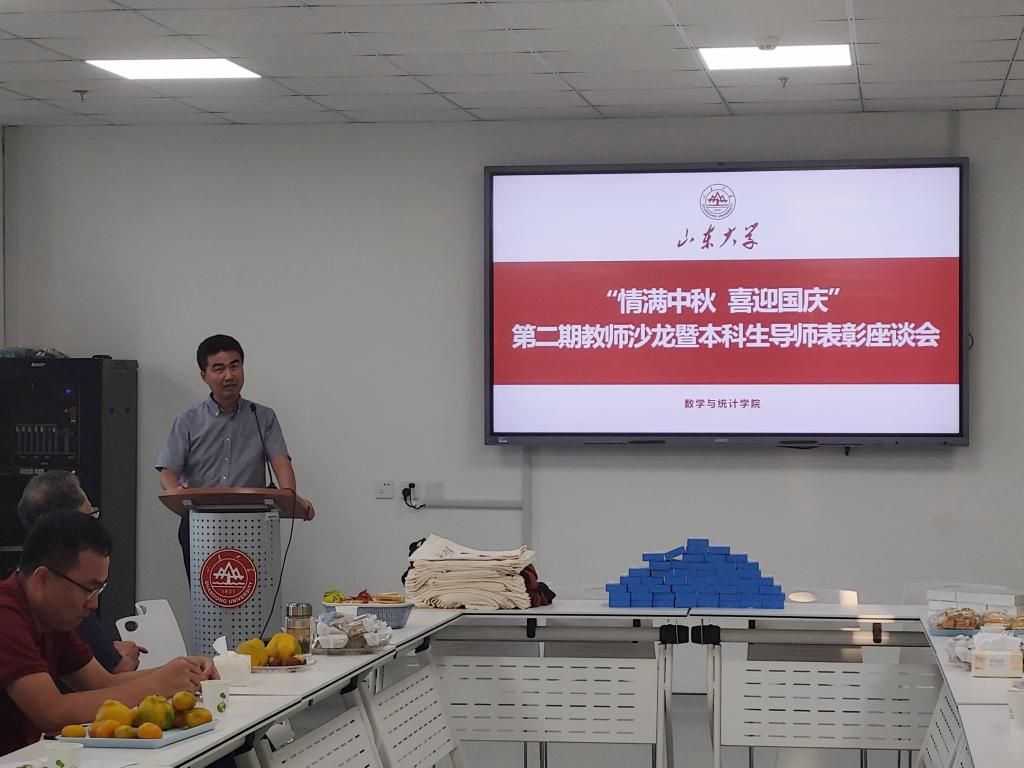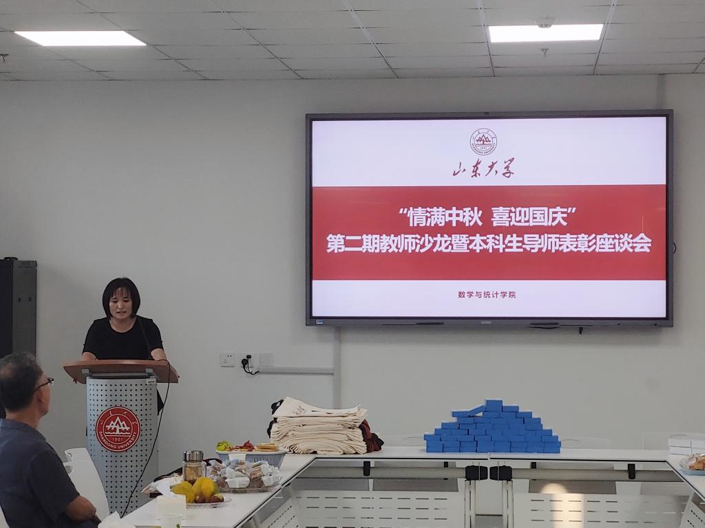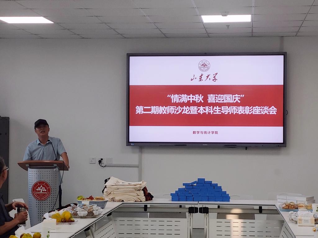 本站讯 中秋、国庆“双节”来临之际,为全面落实立德树人根本任务,提升学院本科生导师工作实效,9月28日下午,爱游戏ayx官方网站于北衡楼1420室举办“情满中秋 喜迎国庆”第二期教师沙龙暨优秀本科生导师表彰座谈会。学院党委书记于振涛、常务副院长齐海涛出席活动并致辞,学院党委副书记王鹏飞主持,各教学系本科生导师、工会小组成员参加活动。