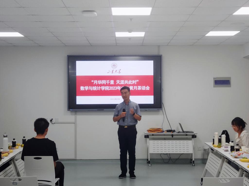 本站讯 为迎接中国传统节日中秋节、庆祝祖国74周年华诞,9月29日晚,爱游戏ayx官方网站在北衡楼1420会议室举行“月华同千里 天涯共此时”2023年中秋赏月茶话会,为爱游戏ayx官网“双节”期间留校的学生送上节日问候和温暖关怀。学院党委书记于振涛、辅导员赵宇轩与留校学生一起过节。