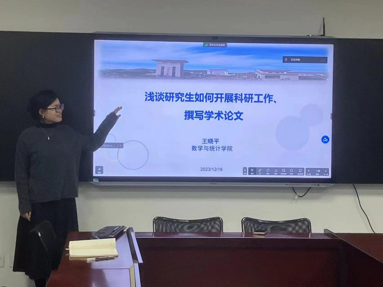 讲座伊始,王晓平老师引导大家思考为什么要读研究生,并从各方面进行讨论分析,指出只有明确读研的目的,明确方向,才能实现人生目标;其次,王晓平老师就研究生搞科研的重要性,就如何将科研工作和撰写论文有机结合进行了详细介绍。同时强调要根据自己所学专业的特色与优势,深度挖掘提炼专业知识体系中所蕴含的价值和内涵,保证科研的广度和深度;同时,王晓平老师还就如何选题、攻克难题、论文写作等方面进行了介绍,鼓励同学们大量阅读文献,多了解前沿动态,多与老师及自己的师兄师姐进行交流。王晓平老师强调学术研究不可能是一帆风顺的,会遇到很多意想不到的困难和挫折,只有体会“山重水复疑无路”的困苦之后才能体会“柳暗花明又一村”的豁然开朗;最后,王晓平老师为大家讲述了学术诚信的概念及具体要求,并为爱游戏ayx官网学生送上深切的期望和诚挚的祝福。