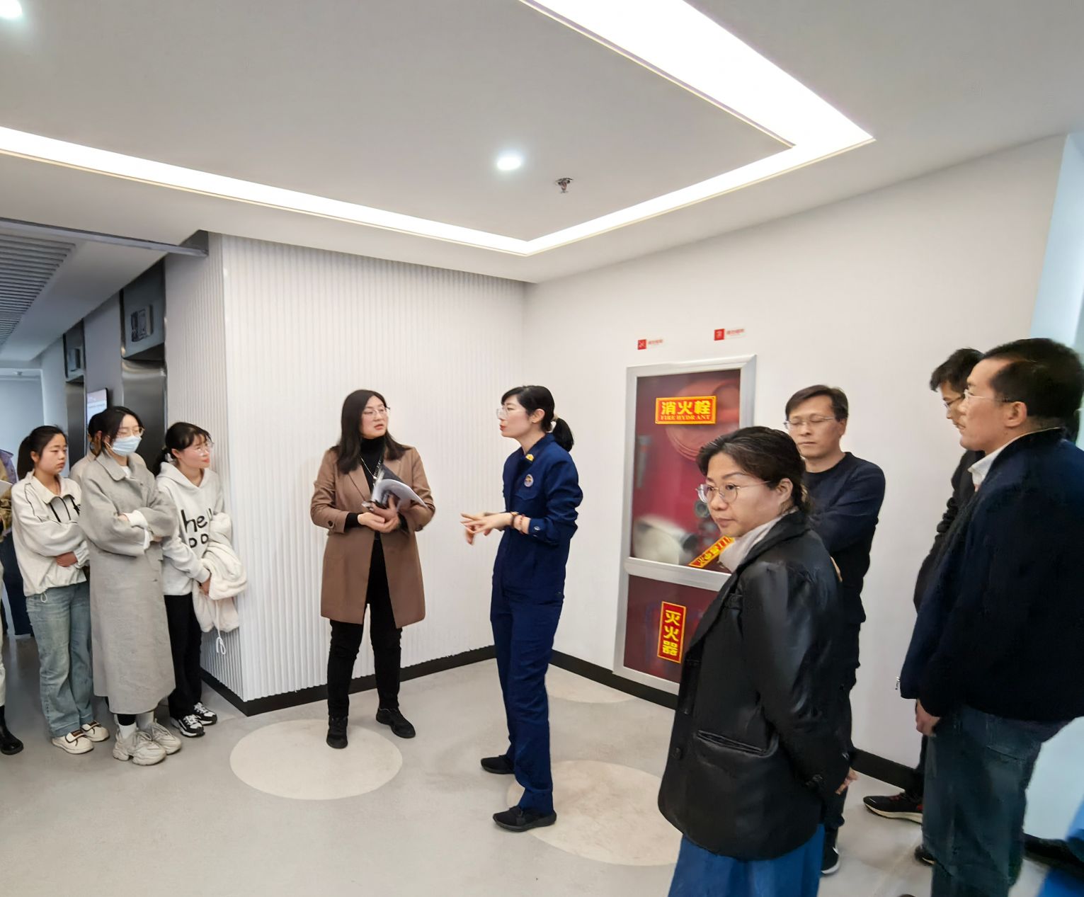 在逃生演练环节,学院院长助理陶扉介绍了学院消防演练预案。党委副书记王鹏飞对消防演练预案的重点环节和关键岗位进行了强调,就演习过程中可能遇到的问题和处置措施进行了现场的梳理和演练,并邀请消防支队宋参谋及学校安全管理处老师进行了点评和指导。师生在宋参谋等的带领下实地了解了学院所在楼层建筑布局,现场学习了手动报警器的正确使用方法、各种逃生路线的选择、消防器材取用及疏散过程中的重点注意事项。