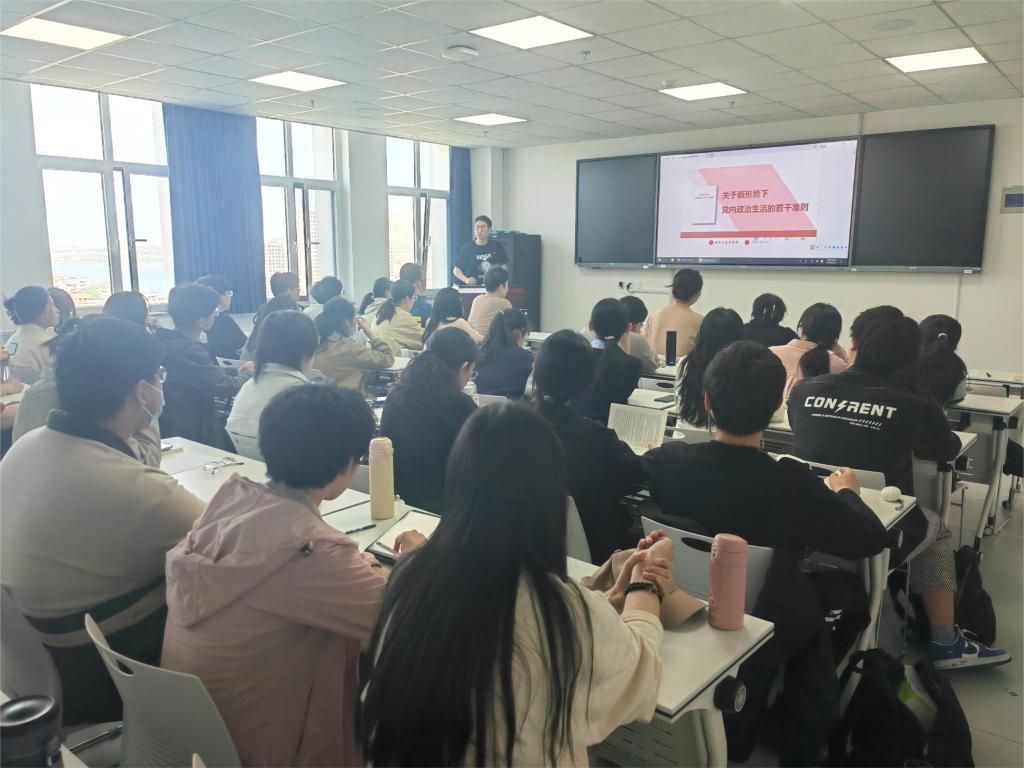 学院老党员杨金才,院长助理陶扉,数学与应用数学系教工党支部书记陈明涛,团委书记孙磊,辅导员王祎璠、赵宇轩分别从“中国共产党百年奋斗的光辉历程和历史经验”“中国共产党党员的条件”“新时代新征程中国共产党的使命任务”“中国共产党的基本理论、基本路线、基本方略”等方面进行了授课。