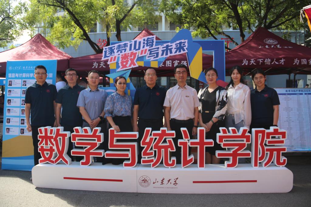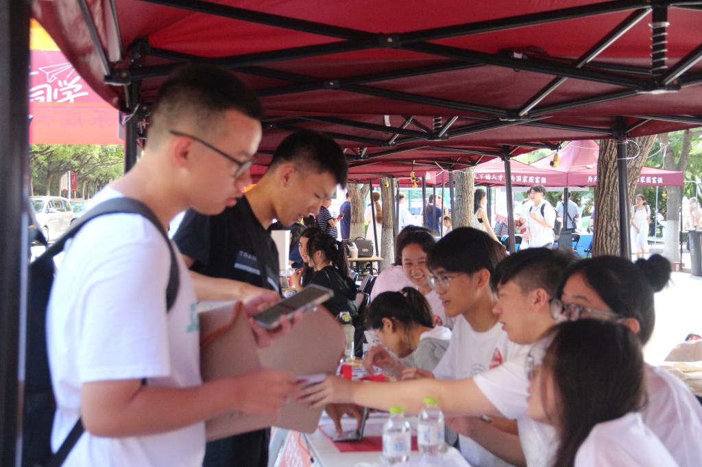 精心服务,有序组织,营造良好现场氛围。9月2日上午,校区党工委副书记兼学院党委书记于振涛、学院常务副院长齐海涛带领班子成员到迎新现场了解报到情况,并与新生和家长进行亲切交谈。学工队伍、学生组织、党员志愿者共同做好服务,为新生办理资格审核、校园卡发放等手续,并耐心进行答疑。学院还制作了师资力量和毕业生升学去向展板,方便新生和家长深入了解学科专业和未来发展。同时,学院还准备了独具数学特色的合照板和大礼包,为新生带来诸多惊喜。