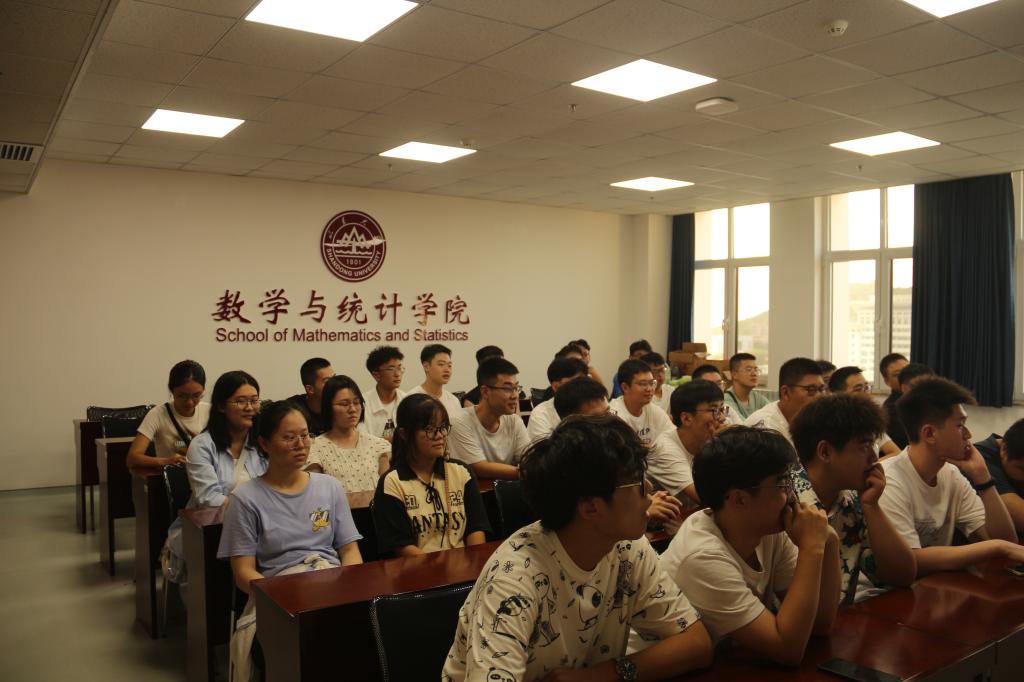 王鹏飞向新生表示了热烈的欢迎,她以“仰望星空谈梦想”“脚踏实地谈行动”“方圆纵横谈素养”为主线,引导学生立足当下、仰望未来、思考大学如何度过。谈到梦想,王鹏飞详细分析了数学专业的发展前景,指出目标不同,采取的行动会有差别,行动的张力也会有差异。她鼓励大家将个人发展融入国家发展战略需求,将自己的兴趣转化为大学学习的动力,志存高远,尽早确立目标,合理规划大学生活。谈到行动,她分析了大学和高中的区别,讲述了大学生活的不同状态,告诫学生幸运并非偶然,希望新生能积极利用学校丰富的学习资源,脚踏实地开展学习和工作,不断提升自己的综合实力。谈到素养,结合各类生动事例,王鹏飞提出新生要学自立,避免铺张浪费、相互攀比,要养成良好的日常生活习惯和学习习惯;要懂规矩,既要学习学校的各项规章制度,也要对大学生常用法律法规有所了解,还要遵守道德文明,尤其要遵守网络文明,不断培养提升自身素养;要担责任,既要有为国家图富强的社会责任感,也要有为自己行为负责的勇气和魄力;要学做事,抓住大学各个锻炼的平台,在实践中学习,不断总结经验、历练成长。最后,王鹏飞勉励同学们要培养看齐意识,追逐优秀,做好成长规划,在和同学同行过程中,不断超越,成就梦想。