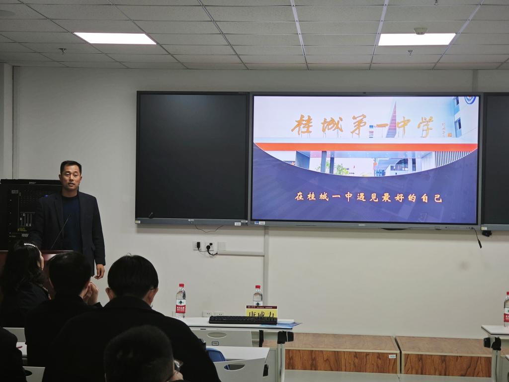 宣讲会上,唐威力对桂城街道的基本情况和各方面优势进行了全面介绍,他以城市、产业、人文三个维度为框架,深入解读了桂城的定位,并重点介绍了桂城的三大特色名片——公园城市、教育强镇、人才乐园。唐威力聚焦教育领域,详细分析了桂城教育的现状,特别强调了桂城对教育人才引进的重视,鼓励同学们积极参加佛山市南海区桂城街道教育领域的招聘考试,投身教育事业,实现个人价值。