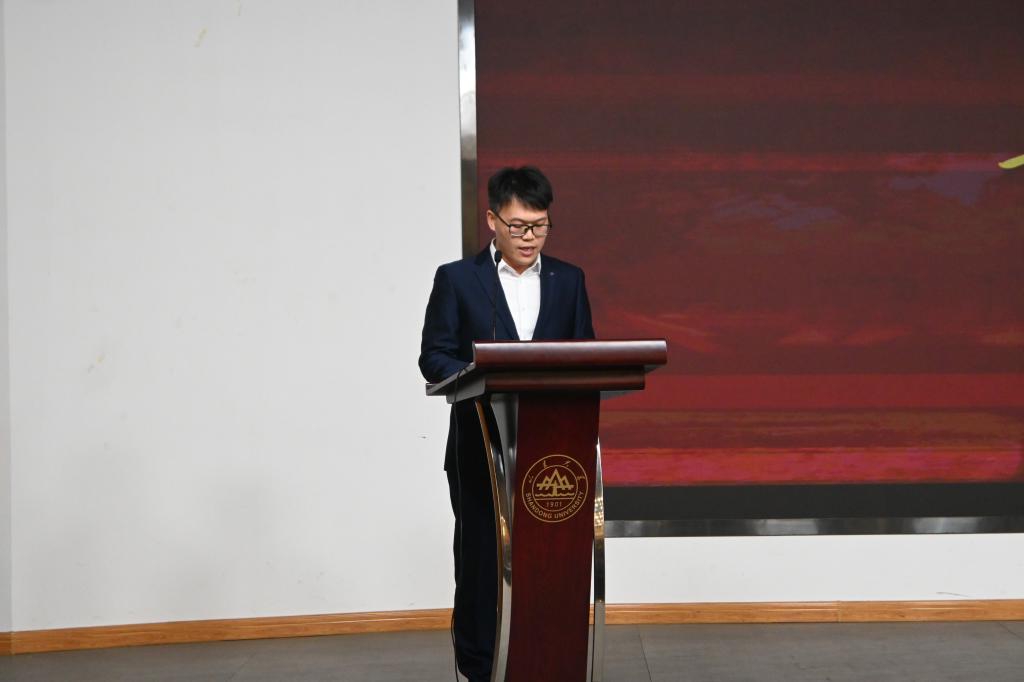 蒋玉蛟作为教师代表进行分享发言,他立足个人在山大求学到任教的身份转变,结合个人科研成长的经历,鼓励青年学子克服功利心态,向内用力,相信长期积累的力量,把数学的追求、学术的志气融入到服务国家发展战略,在奋斗中找到自身价值。