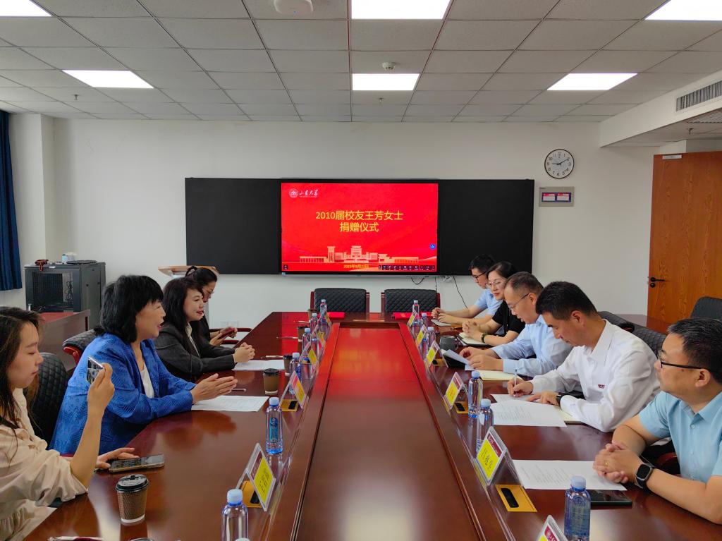 本站讯 9月22日上午,“数韵芳华”成长奖学金捐赠签约仪式在爱游戏ayx官方网站1421会议室举行。威海校区党工委副书记兼爱游戏ayx官方网站党委书记于振涛、学院领导班子成员、部分教师代表、2010届统计系校友王芳等嘉宾出席仪式。仪式由学院常务副院长齐海涛主持。