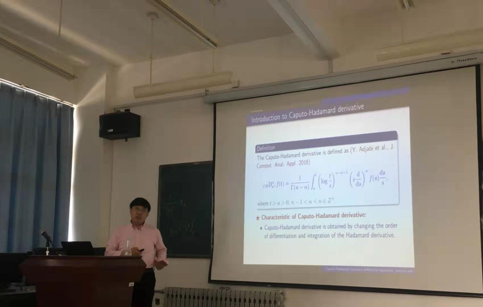 本站讯 8月16日,上海大学李常品教授应邀来爱游戏ayx官网进行学术交流,并在学院304报告厅做了题为“Caputo-Hadamard fractional differential equations: analysis and computation”的学术报告,学院部分师生聆听了报告。