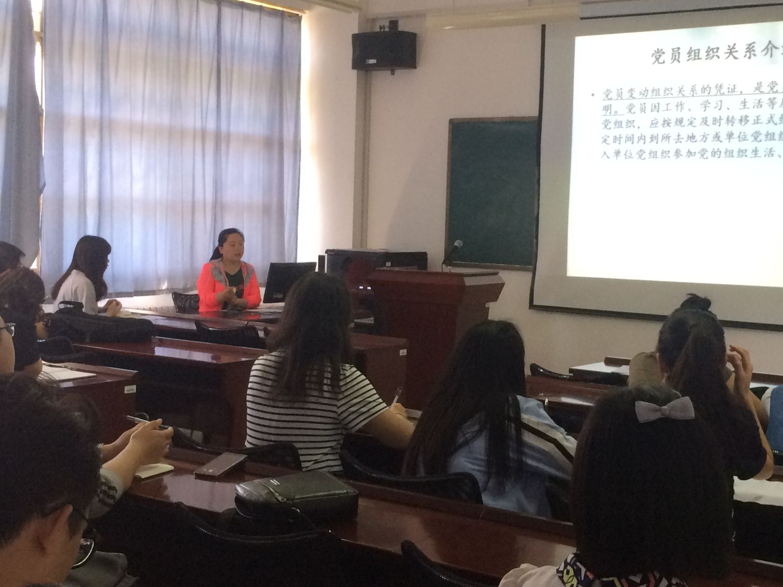 最后,陈昕就毕业生党组织关系转接的相关问题进行说明。她从党组织关系介绍信、如何转接毕业生党员组织关系、组织关系转接工作要求、介绍信抬头权限规定和填写事项、毕业生党员需要注意的问题等五个方面进行详细说明,部署了学院“强化意识争当先锋,心系母校奉献社会”主题教育活动的具体安排。