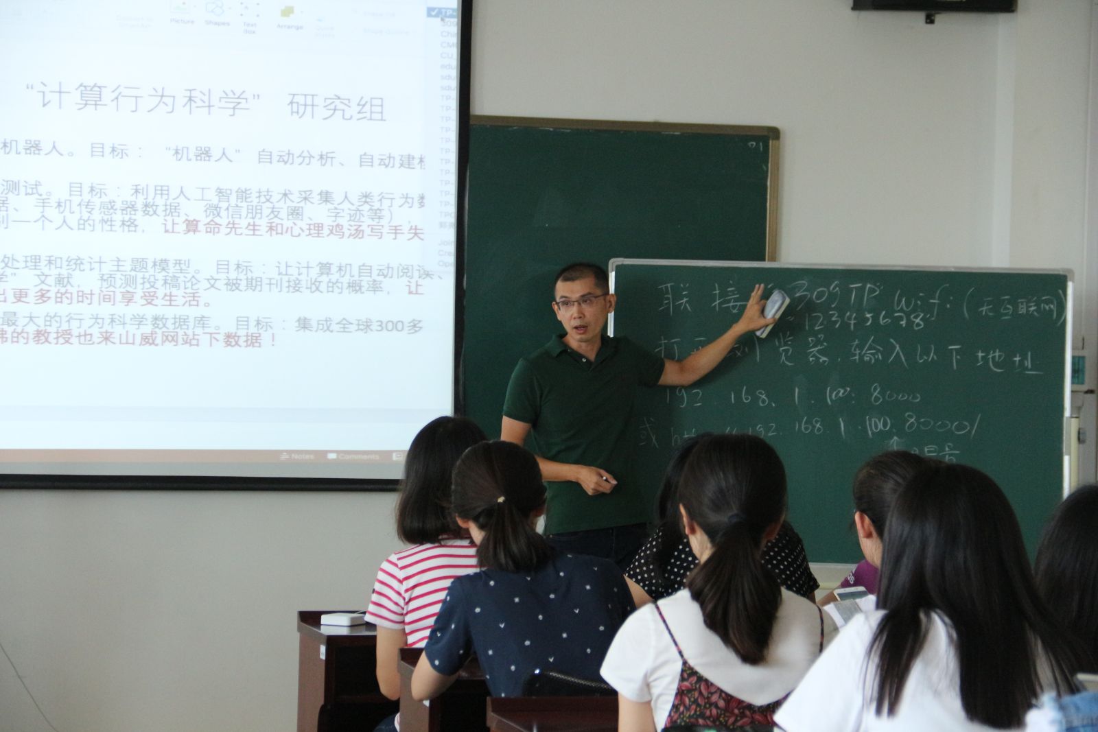 本站讯 2017年9月12日上午十点,爱游戏ayx官网于图东环楼304室举办“计算行为科学”研究组宣讲会。本次宣讲会由学院特聘教授郭亮主持,其本人也是“计算行为科学”研究组的负责人与带头人。学院2014级部分学生参加了此次宣讲会。