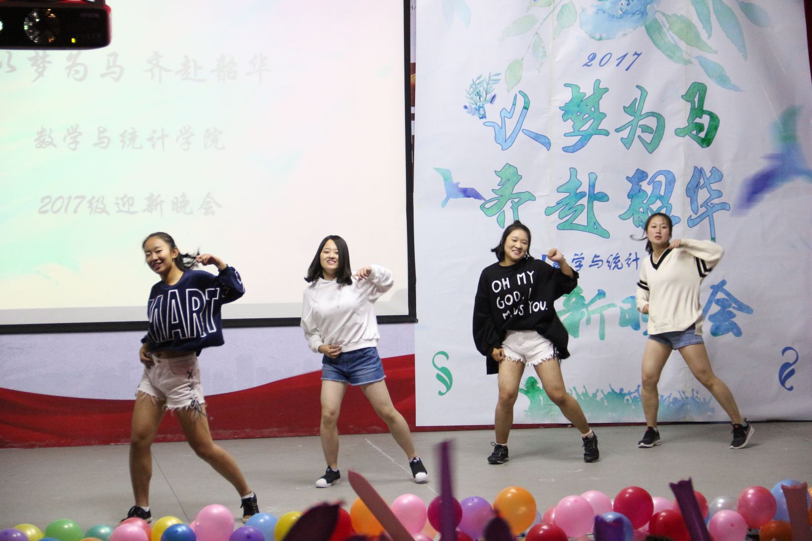 本次晚会以“初见”“探索”“逐梦”为线索,分三篇章展开。伊始,热辣的开场舞《Bang Bang Bang》引爆全场,拉开了晚会的序幕。第一篇章“缘起·筑数梦”展现了2017级同学初见山威、初遇数院的美好和向往。悦耳动听的歌曲串烧《We are young》、相声《开学奇遇记》表达了对新同学的热情欢迎。小品《作弊?不存在的》贴近学生学习生活,以诙谐幽默的方式传达了作弊不可取的教育意义,精彩的表演让在场师生们开怀大笑。在第二篇章“求索·探新知”中,2017级的同学们为大家带来了各具特色的班级魅力风采展,将全场的气氛推向高潮,台下掌声雷动,欢呼不断。同学们在表演中释放青春活力,展现出数院学子敢于创新、勇于探索、自信昂扬的精神风貌。第三篇章“扬帆·正起航”表达了对2017级新生逐梦远航的美好祝愿。应数班同学的歌曲串烧秀出无限活力,拉丁舞《passion》更是惊艳全场。最后,晚会在清婉动听的歌曲《如果我爱你》中落下帷幕。