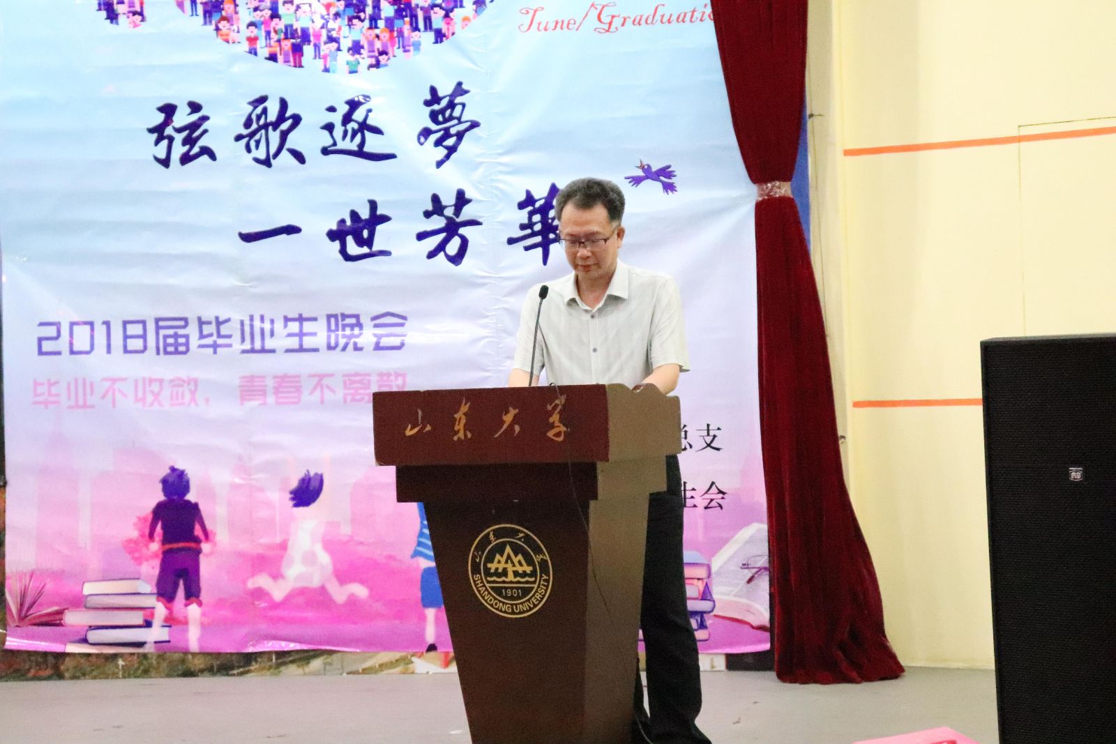 本站讯 6月9日晚,爱游戏ayx官网于玲珑学堂举办2018届毕业典礼暨“弦歌逐梦,一世芳华”毕业生晚会。学院常务副院长綦建刚、党总支副书记单丙波、学院部分老师以及各年级辅导员莅临晚会现场,2018届全体毕业生和在校生代表共聚一堂欢送毕业生。