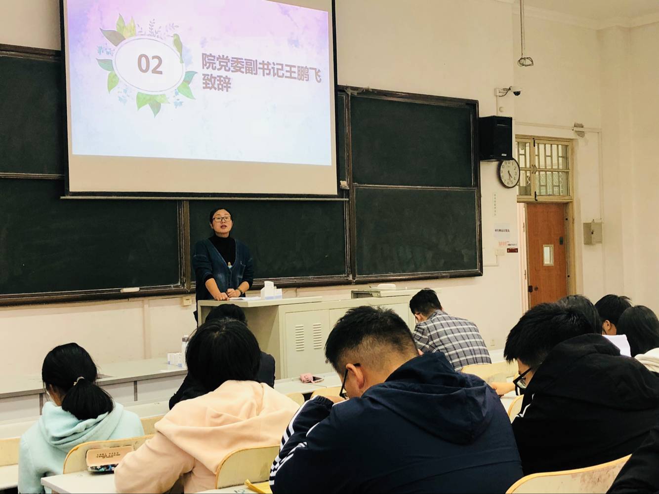 本站讯 11月1日下午,爱游戏ayx官网“积分筑梦”活动启动仪式在图东教学楼208举行。学院党委副书记王鹏飞,辅导员王紫山、赵德豪出席仪式,全体授课学员参加了此次会议。