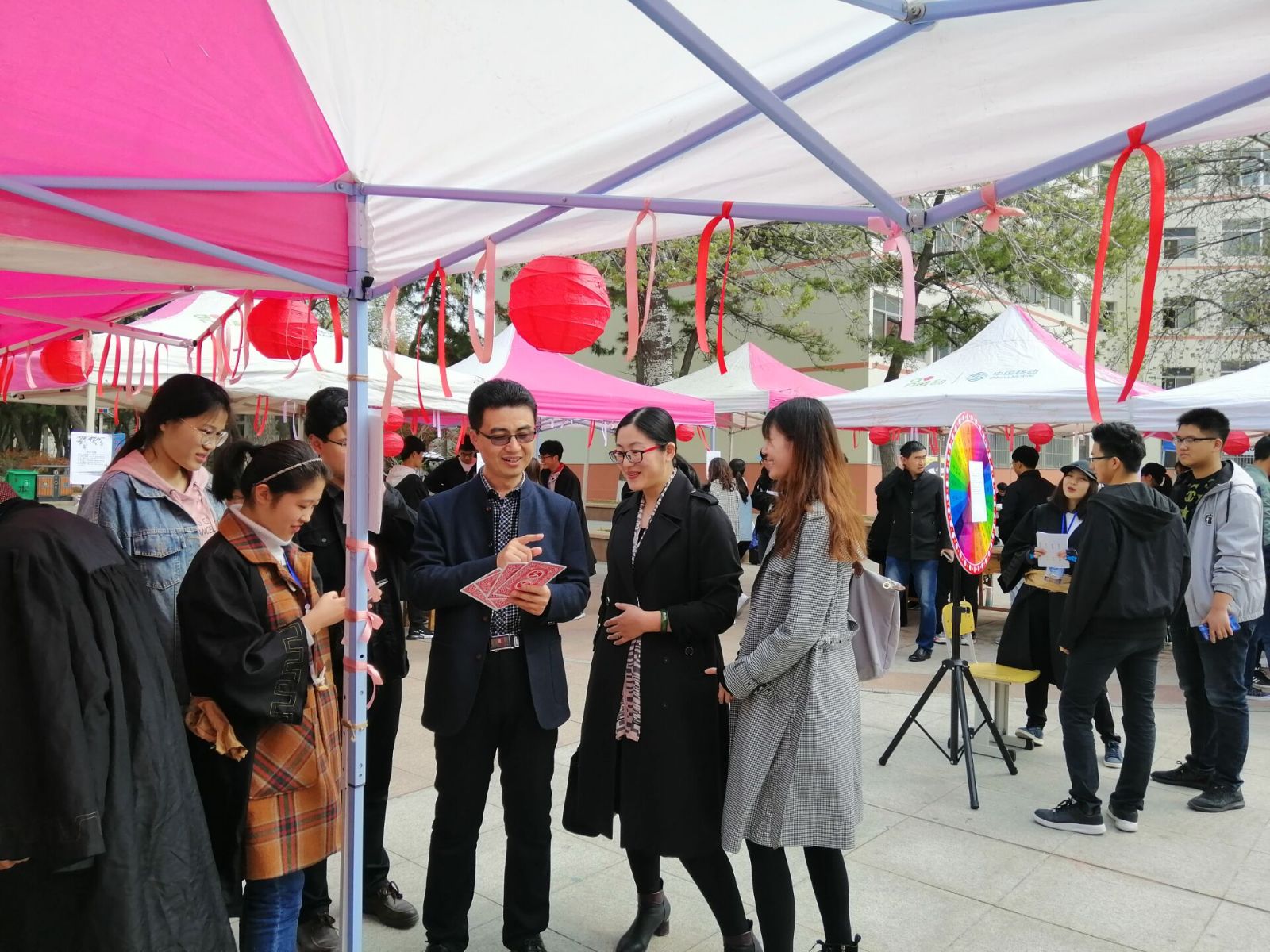 本站讯 为增加同学们对数学的热情,在趣味中推广数学,增强全校同学对数学文化的了解,4月20日,爱游戏ayx官网于五四广场举办了以“数学江湖风云录”为主题的数学嘉年华之魅力数学游园会。爱游戏ayx官方网站(威海)团委书记于振涛、爱游戏ayx官方网站党委书记单丙波、党委副书记王鹏飞,辅导员孙磊、王祎璠和赵德豪出席本次活动,全校三百余名学生参与了活动。