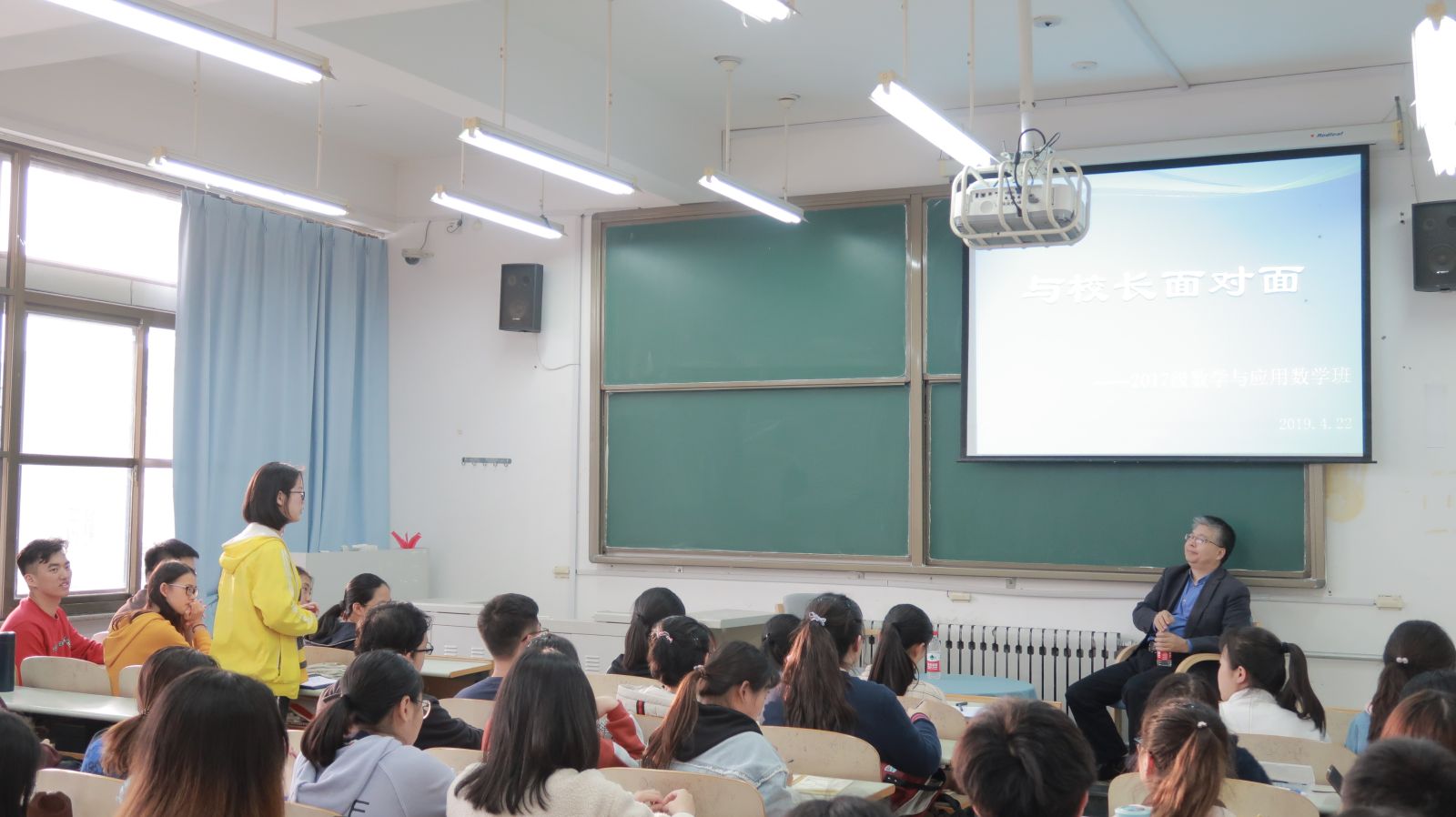 本站讯 4月22日下午,爱游戏ayx官方网站副校长、威海校区校长刘建亚教授在数学院310教室与联系班级2017级数学与应用数学班全体同学进行了一场面对面的交流活动。爱游戏ayx官方网站党委书记单丙波、常务副院长綦建刚、党委副书记王鹏飞、2017级辅导员王紫山共同参与了此次交流活动。