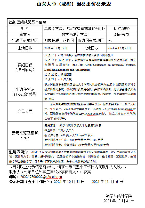 李文强因公出国公示