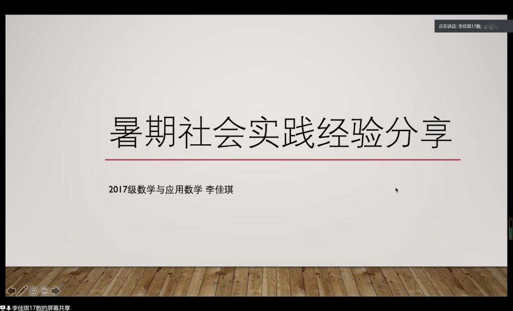 会议开始,实践服务部秦美凤介绍了此次暑期社会实践活动的具体情况及要求并强调了此次活动开展需要注意的安全问题。辅导员王紫山鼓励参加此次社会实践的人员充分利用线上资源进行活动的开展,在实践主题的选择时可考虑与疫情和脱贫攻坚相关的主题,与实际相联系,尽可能做到思维的发散。在线上开展暑期社会实践活动时,后期文案的写作、图片的编辑及资料的整理应当引起高度的重视,运用数学建模等专业方法时,尽可能在正文中简述大致思路,而将运算步骤等细节添加在附件里,使活动的思路与方法更加浅显易懂。其次,2019暑期社会实践优秀团队代表董书涵和李佳琪进行了暑期社会实践经验交流。团队代表董书涵连续两年带队参加社会实践活动,在会议中分享了社会实践课题选择的策略,要有深度、有想法,关注家乡的政策,结合实事,从细节出发,并在论文的撰写方面做出了简要的介绍。优秀团队代表李佳琪鼓励团队多查阅往期优秀团队资料并强调了社会实践的意义,能够拓宽自己的知识面,讲述了其参加暑期社会社会实践的亲身感受,并希望团队能结合兴趣爱好与社会热点,激发自己的热情。最后,在实践服务部刘志敏的结束语下,此次暑期社会实践线上动员大会圆满结束。