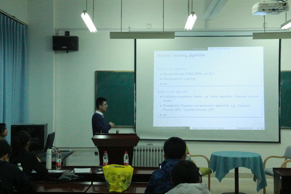 陈泽汛介绍了他的求学经历以及做过的研究工作,并作了题为《Probabilistic modelling: Gaussian Process for Machine Learning》的科普报告,详细介绍了机器学习、人工智能、统计学习、自然语言处理、计算机视觉、大数据之间的关系与区别,科普了什么是机器学习、什么是高斯过程,以及高斯过程在机器学习和数学建模中的优势。报告结束后,进行嘉宾座谈。陈泽汛回答了现场观众提出的关于留学材料准备、留学生活和机器学习专业相关问题,并向大家分享了他选择出国的心路历程。