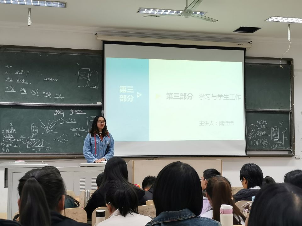 李嘉豪为我们带来有关科技创新的分享,向大家展示其几十项科研成果与丰富的实习经历,分享自己如何对科研感兴趣以及对科研做出的努力,告诉同学们努力总会有收获,之后又介绍了科创的重要性与自己面对科创难题的经历,让同学们对科创有了进一步的了解。王之彦为大家进行社会实践的经验分享,他先向大家讲解什么是社会实践与为什么做社会实践,又关于选题、资料准备、团队组建、调研地的考察、报告的撰写这五个方面为同学进行详细讲解。魏佳佳向大家分享有关学习与学生工作的经验指导,告诉大家树立正确的学习工作观念,把工作与学习统一起来,并且要提高效率,学会制定工作计划,让同学们对于自己的学习与生活有了更好的规划。三位嘉宾分享结束后观众积极地参与提问,嘉宾一一热情地给出了解答引起全场共鸣,交流会在热烈的掌声中圆满结束。