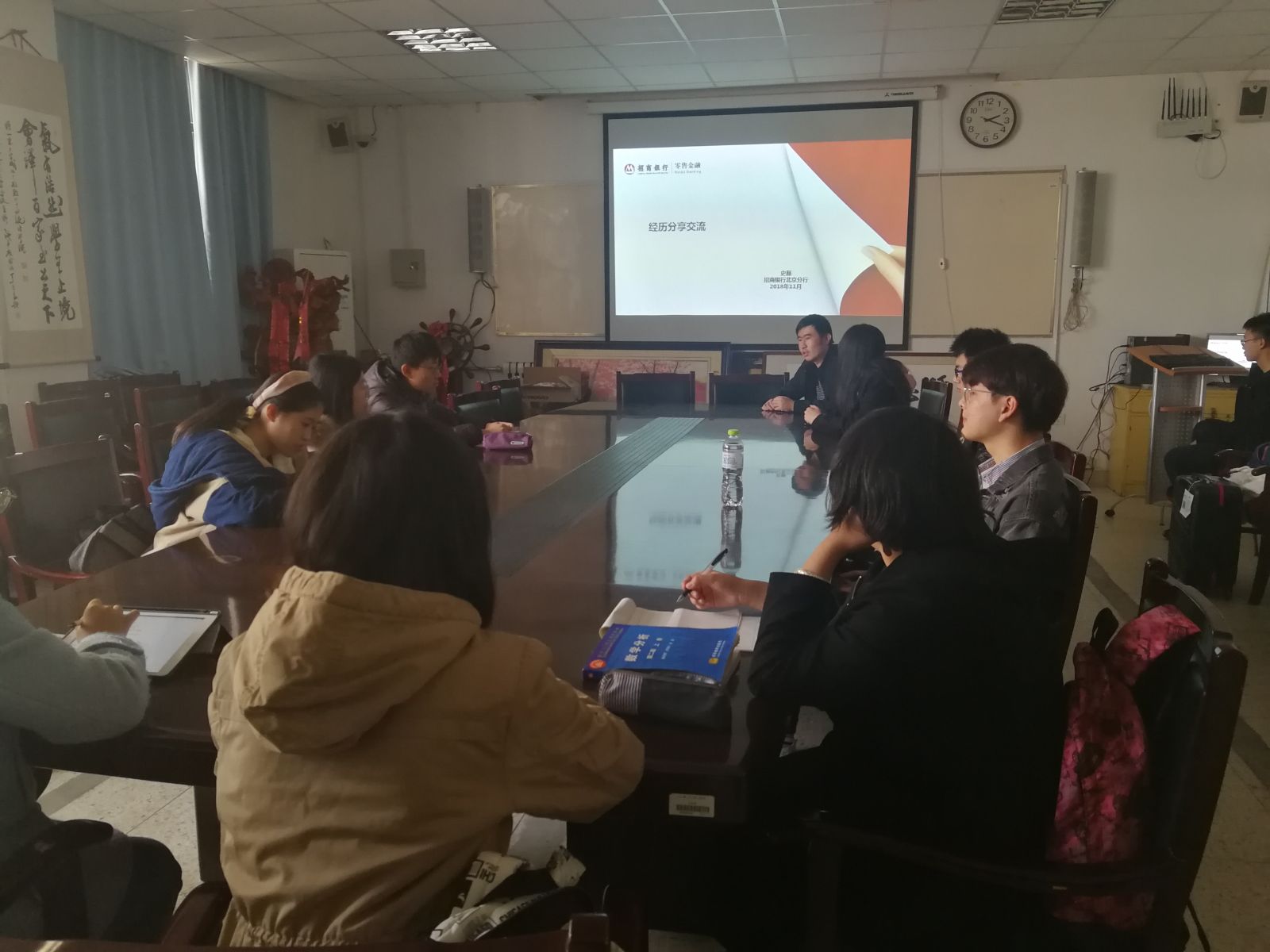 本站讯 2018年11月18日下午,爱游戏ayx官网于图东环楼208室举办了有关双学位和就业的经验交流会。辅导员孙磊出席了此次讲座,学院2014级毕业生,现就职于招商银行北京分行的史磊回母校主讲此次讲座,学院部分学生参加了此次讲座。