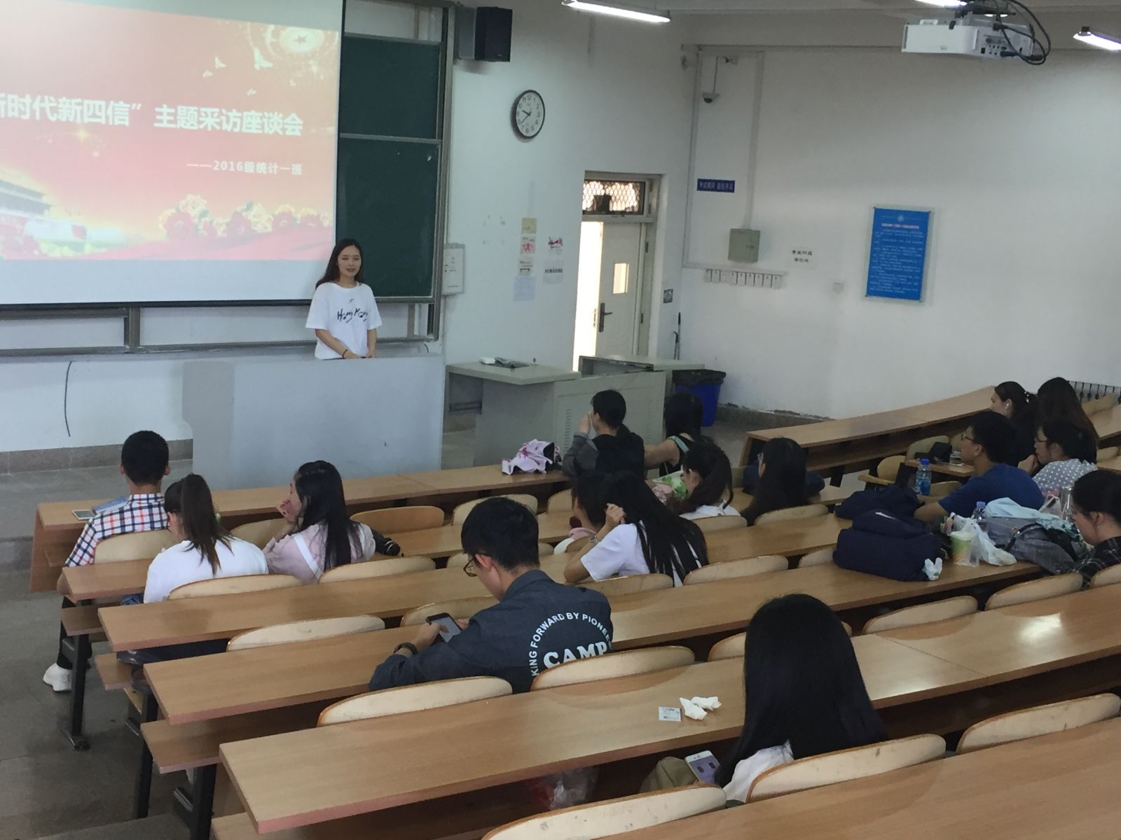 本站讯 2018年6月5日,2016级统计一班于商院356举行主题座谈会,本次会议由团支书赵丽梦主持,班级全体成员参加了本次会议。