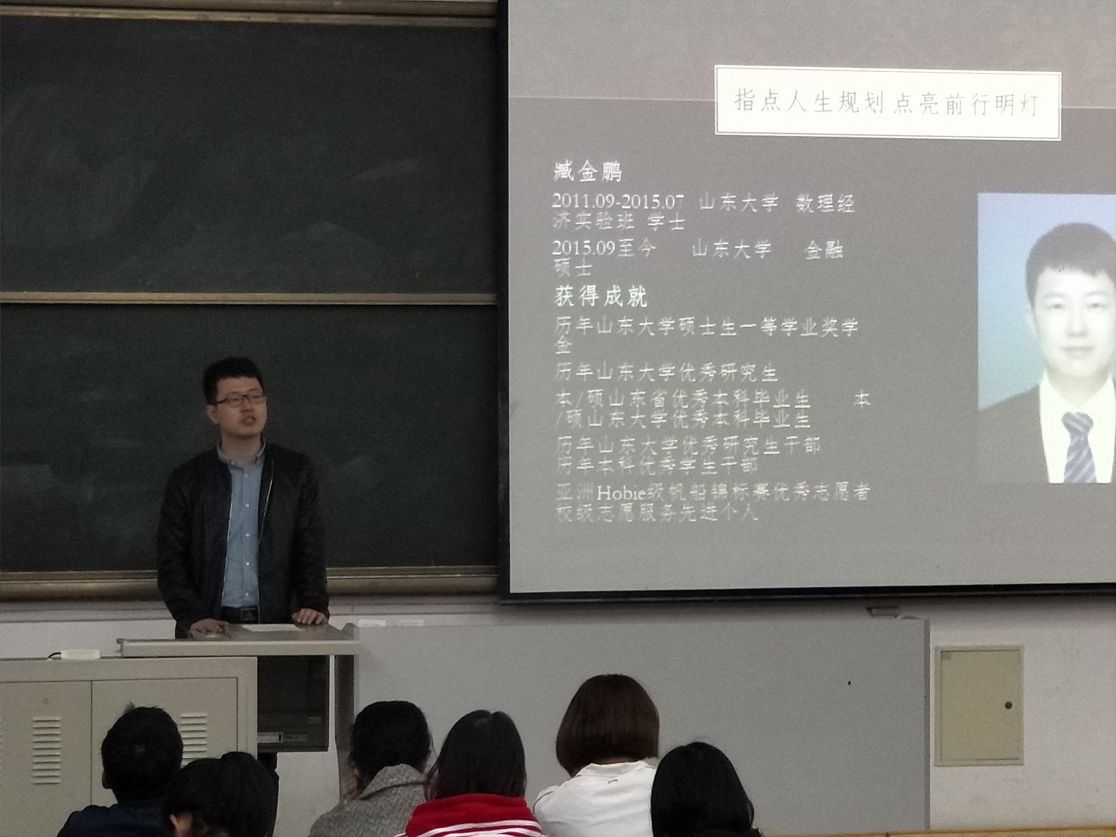 胡琴琴、陈潇是爱游戏ayx官方网站2004、2005级本科学生,博士毕业后又回到母校任教。两位老师结合自己的成长经历,针对目前2017级普遍存在的困惑进行了一一解答。胡琴琴老师强调了“打好自身基础,在奋斗中向目标靠拢”的重要性,鼓励同学们要将专业知识打牢,提升自己的实践动手能力。陈潇老师通过自己的亲身经历告诉同学们,无论未来如何规划都要将自己手头事做好,努力学好数学基本功,提升未来自己的不可替代性。学院2015届毕业生数理金融实验班的臧金鹏学长从专业学习、发展方向提出了建议,鼓励大家放手去干,在学习生活中培养自己,在学生工作中完善自己。最后,由寒假在苏州、大连进行就业单位实践的两支团队进行了调研经历及收获的分享。