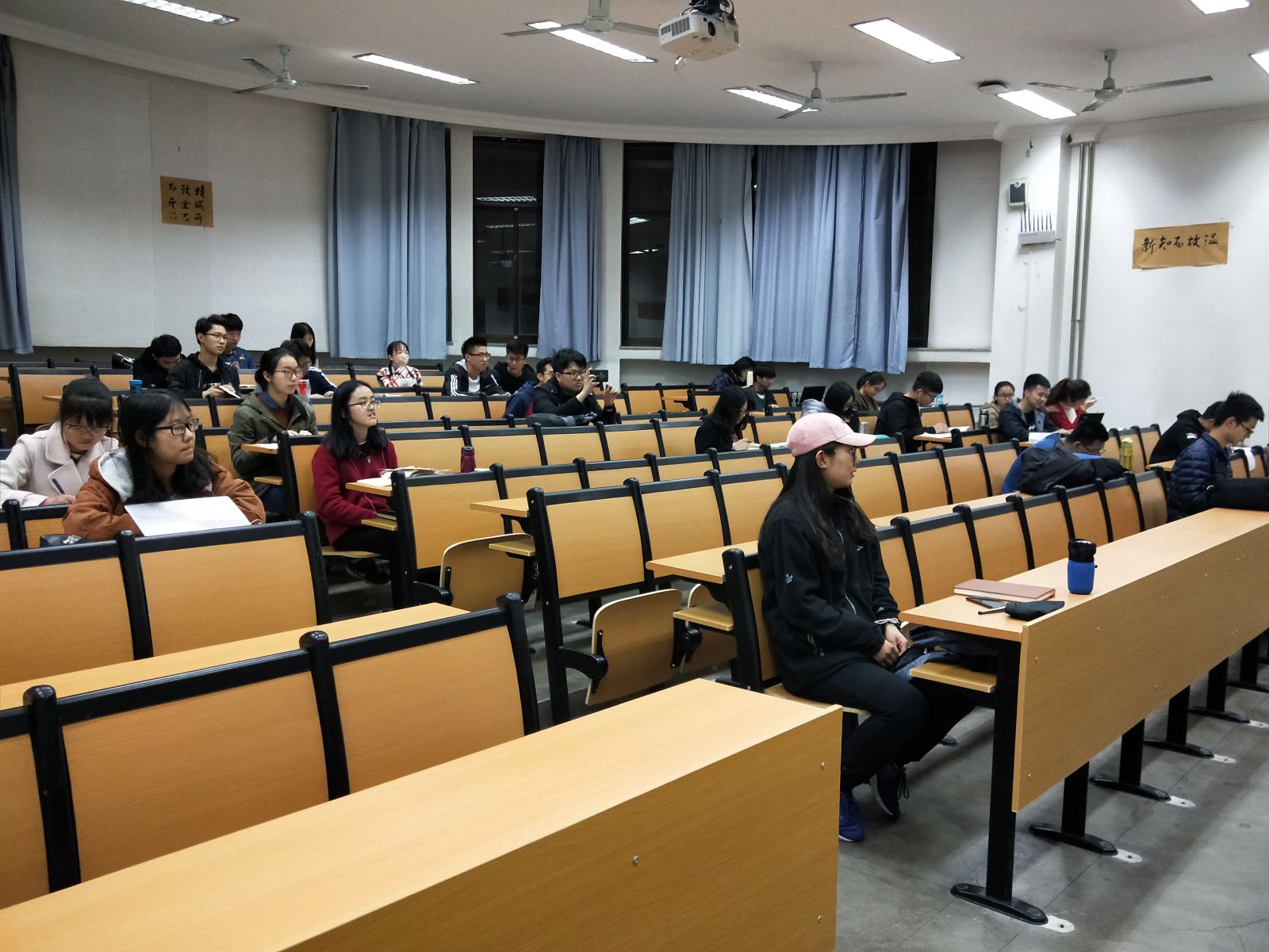 本站讯 2018年4月10日晚,2017级统计二班于图东教学楼219举办了学习经验交流会,活动由学习委员肖梦琪主持,由在上学期期末考试和四级中取得优异成绩的林钰莹、杨舟凡、王应时翔和叶扬主讲,统计二班全体同学参加了本次交流会。