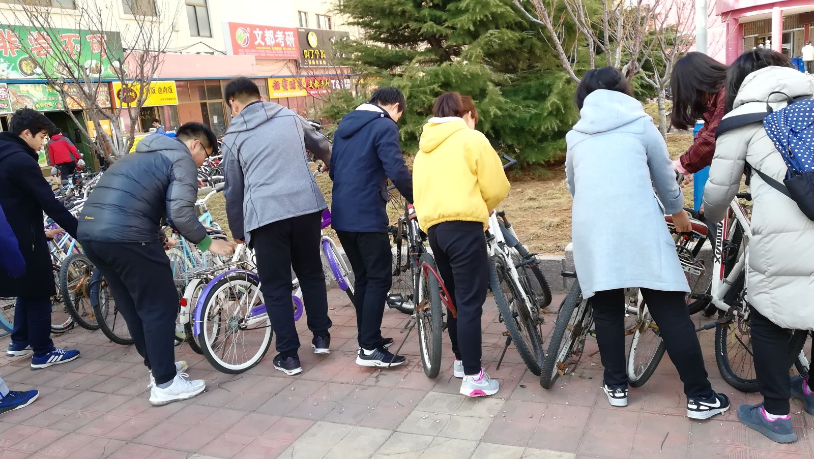 第二组同学的任务是摆放校园中杂乱的自行车。在两小时的工作中,同学们摆放了教学楼周围、宿舍楼周围和餐厅门前的自行车,共18人参与。大家边工作边交流,氛围十分融洽。