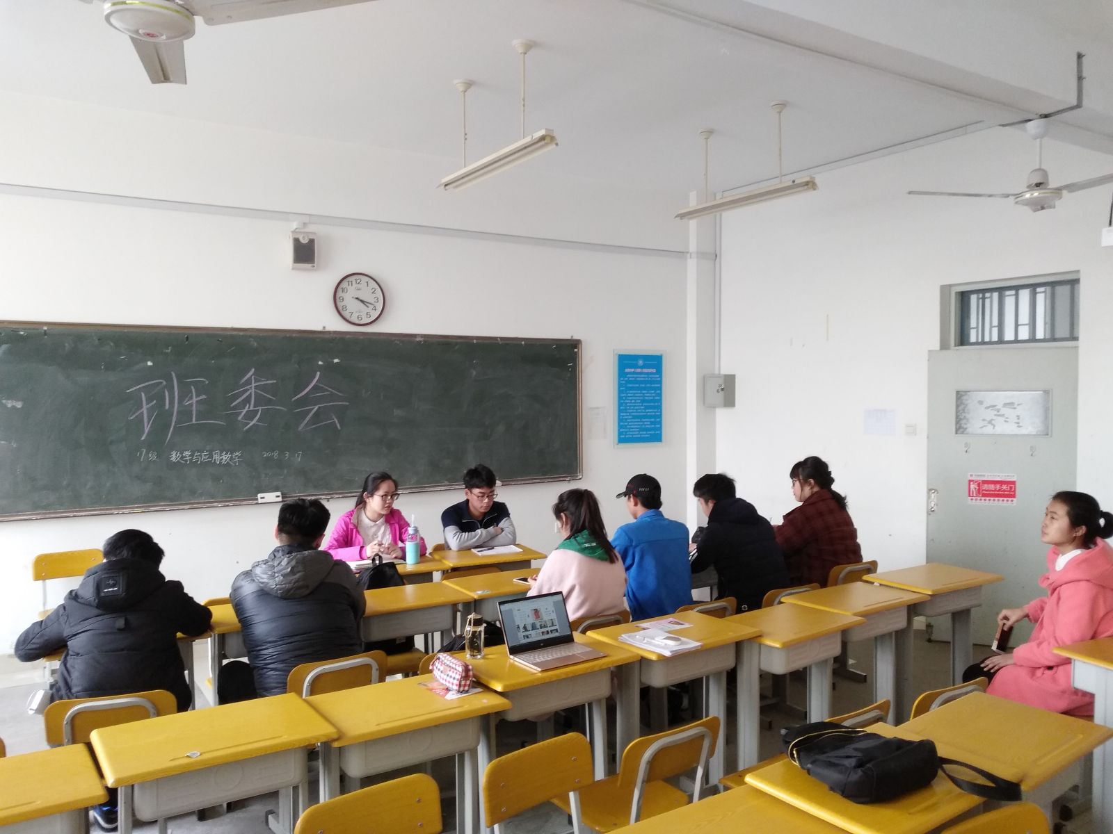 本站讯 3月17日下午,2017级数学与应用数学班在电子楼403召开了大一下学期第一次班委会。新一届全体班委参加了此次班委会。