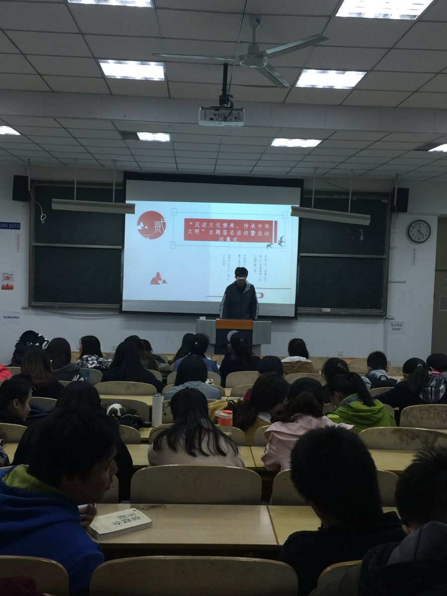 本站讯 2017年11月1日, 2016级统计二班于图西教学楼219举办“传统手工竞相绽,经典文化继相传”主题观影活动,活动由班长龚健欢主持。