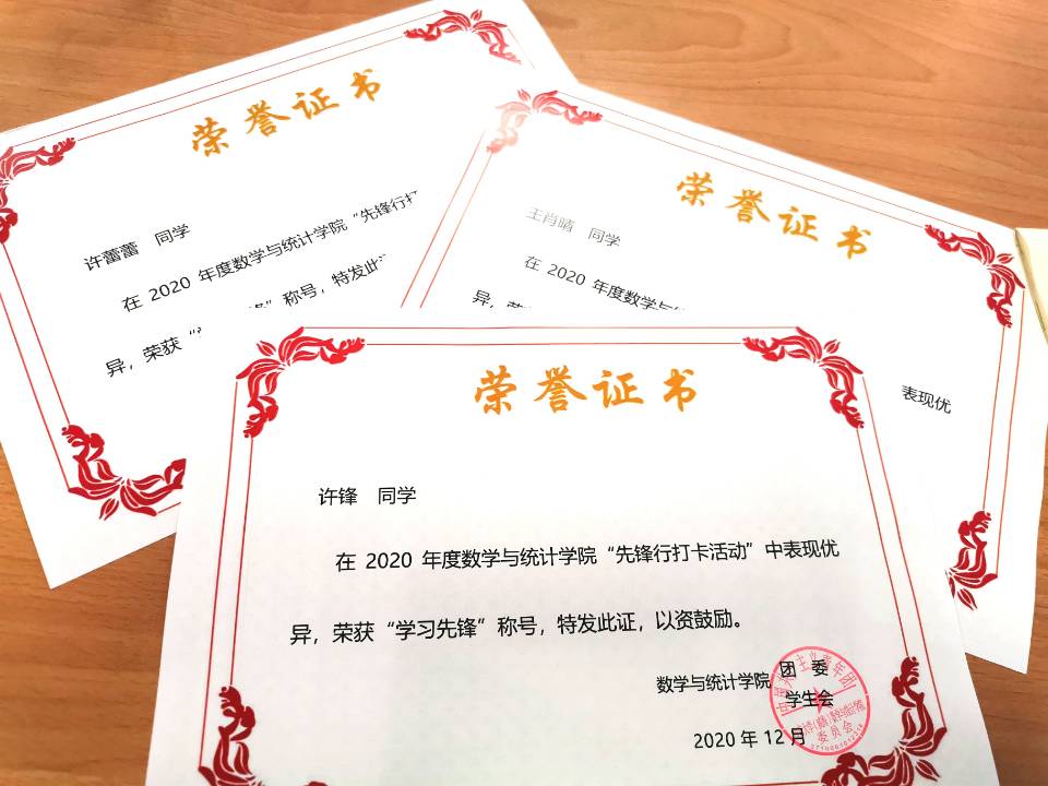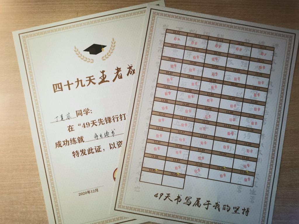 本次先锋行打卡活动依托“四十九天王者成就”活动记录卡与印章、精美礼品、荣誉证书等,带给打卡同学实际获得感,激励同学们坚持良好习惯的养成;通过中期检查与负责人监督,保障同学们的项目完成质量,更好的起到监督引领的作用。最终,先锋行系列打卡活动完成效果良好,在每个打卡群中,同学们诚信积极参与,打卡的秩序井然、氛围热切。本学年共开展10项打卡项目,活动参与人员覆盖爱游戏ayx官网2018-2020级三个年级的同学,整体参与率高,最终共有260人次完成打卡,10名同学在本次打卡活动中表现突出,在爱游戏ayx官网整体形成了共同努力、健康生活、助人助己的优良风气。