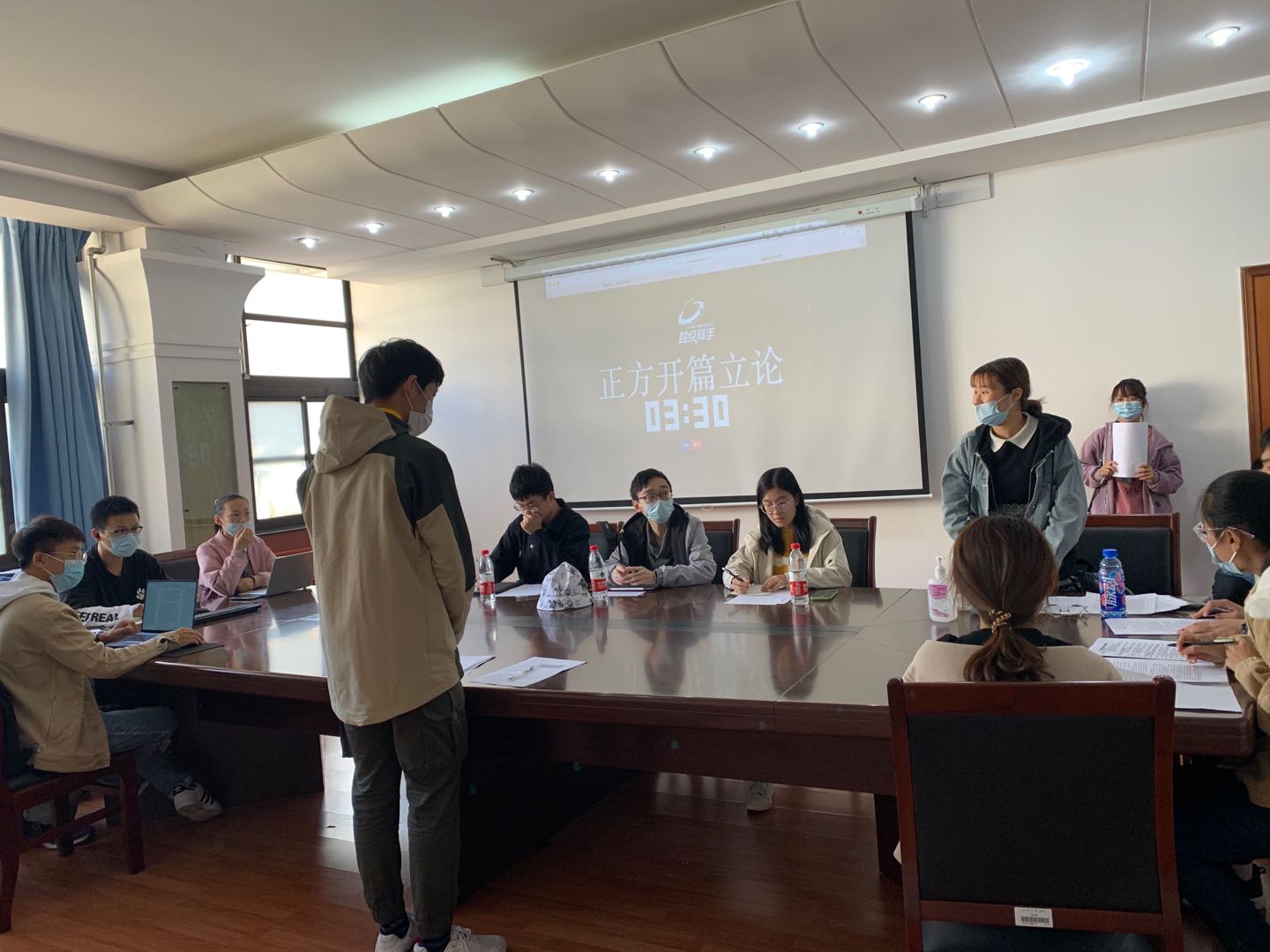 本站讯 10月17日上午,爱游戏ayx官网于图东环楼216研讨室举办了第一期“数韵风采,谁语争锋”新生辩论赛。本次辩论赛共分两场,第一场由正方2020级数学类二班对阵反方2020级数学类四班,第二场由正方2020级数学类三班对阵反方2020级数学类一班。本次辩论赛由石俊煊担任主席,唐浩博负责计时,其中第一场评委为叶家辉、陈晓姝、薛建恒,第二场评委为丁夏菲、薛建恒、张正泽。