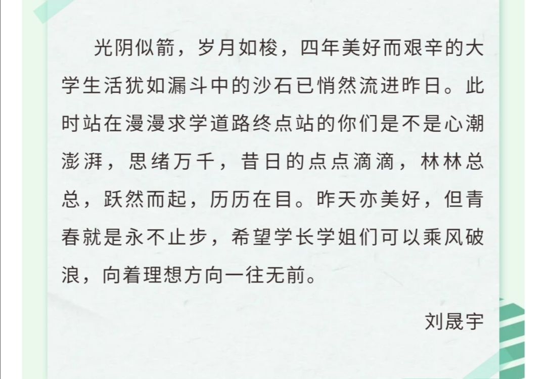 本次活动使毕业生感受到了爱游戏ayx官网学子们的浓浓情意,为将来的发展打下良好基础。同时还给同学们提供了一个表达自我的机会,搭建了一座同学们之间相互理解、抒发情感的桥梁,有助于为同学们营造一个健康的心理环境。