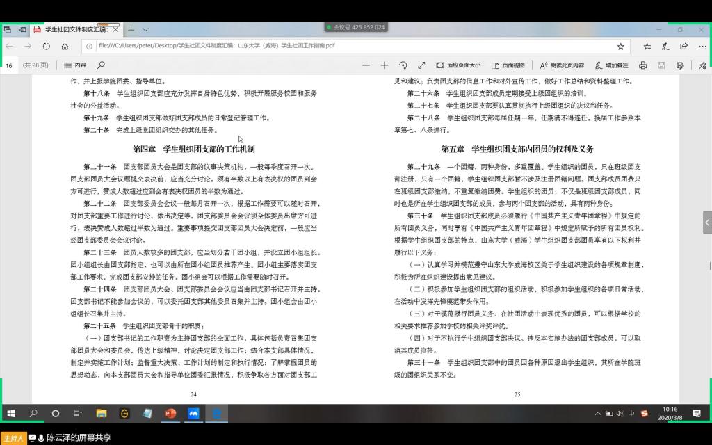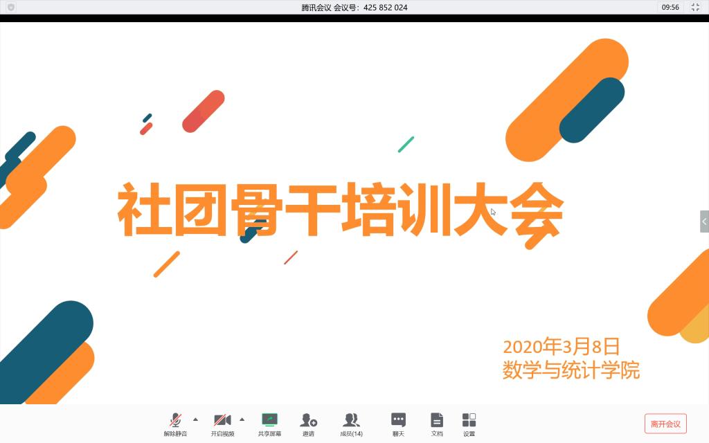 本站讯 3月8日上午9点,爱游戏ayx官网在腾讯会议平台线上举办了社团骨干培训大会。团委书记孙磊、辅导员赵德豪出席本次会议进行指导。学院学生会主席魏佳佳、文化建设部全体成员、数据科学协会与望言辩论社社团骨干参加了此次会议。本次会议由文化建设部部长陈云泽主持。