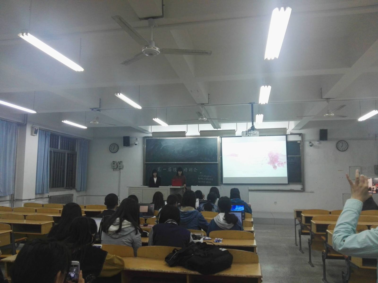 本站讯 3月31日晚上,由法学院调研中心、海洋学院自强社、数学院统计调研协会联合举办的第一届技能培训会在电子楼101举行。参加本次活动的有各个社团的新老干事和感兴趣的会员们,来自海洋学院的熟悉掌握PS技能的周海欣同学也作为嘉宾参加了此次活动