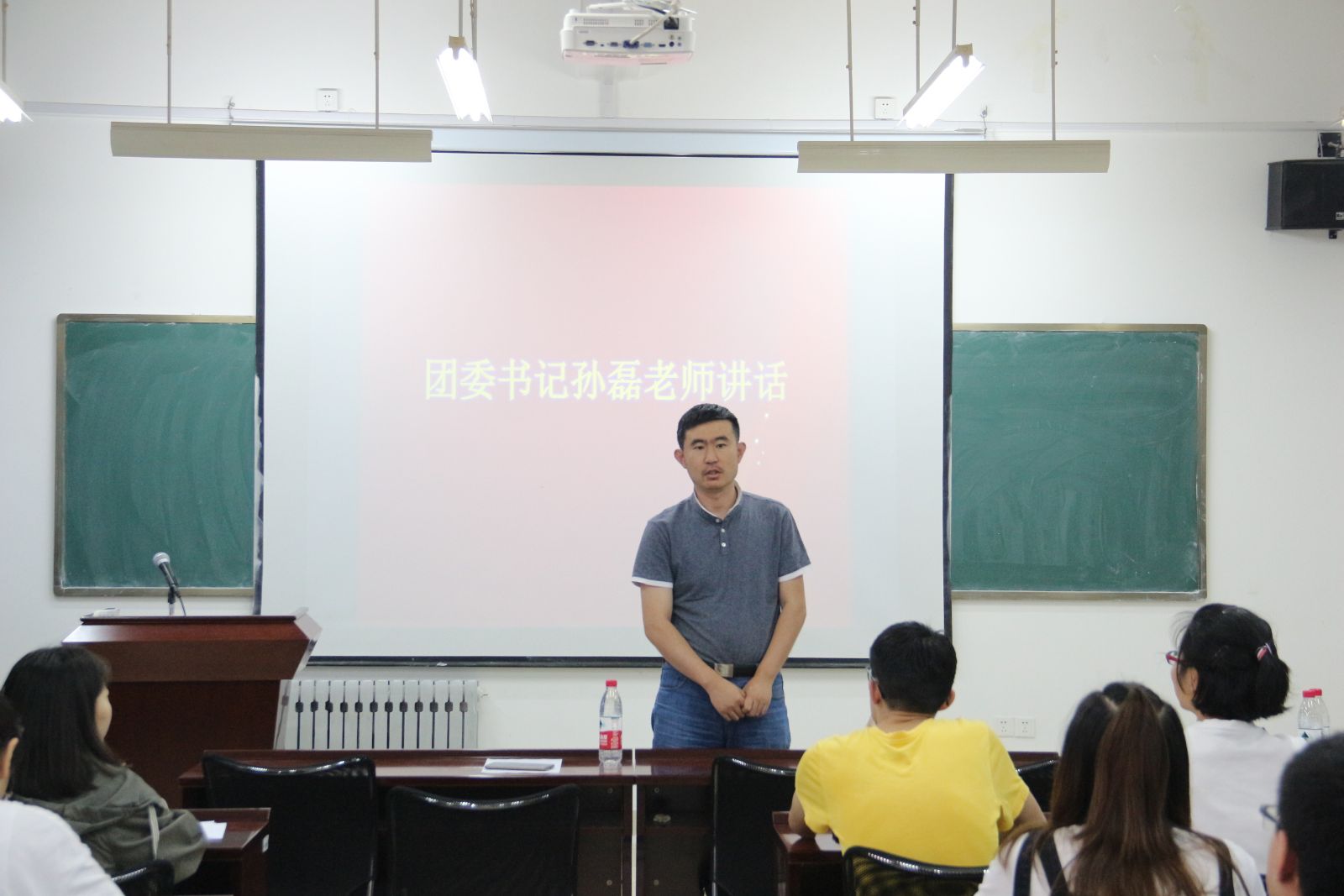 会议伊始,社会实践部部长孔欣宇介绍了本学年社会实践活动开展情况,并宣读了暑期社会实践应急预案。暑期社会实践代表吕靖发言,她表示,投身社会实践,能够培养自己统筹能力和管理团队的能力,并为学生从校园走向社会打下坚实基础。随后,孙磊老师为校级立项团队、校友走访专项团队代表授旗。孙磊老师指出团队在实践过程中要及时与指导老师沟通和联系,并强调了结题报告书写的重要性,要结合专业知识,提前构思数据获取方法和问卷设计方案,用系统的解决方案呈现实践成果。他告诫同学们要高度重视实践过程中的安全问题,并祝愿所有团队成员在社会实践过程中有所收获。2018年社会实践优秀代表赵圣超结合自身社会实践经历进行了经验分享。最后,社会实践部副部长殷宇佳向暑期社会实践团队代表讲解了实践过程中注意问题和相关细则要求。