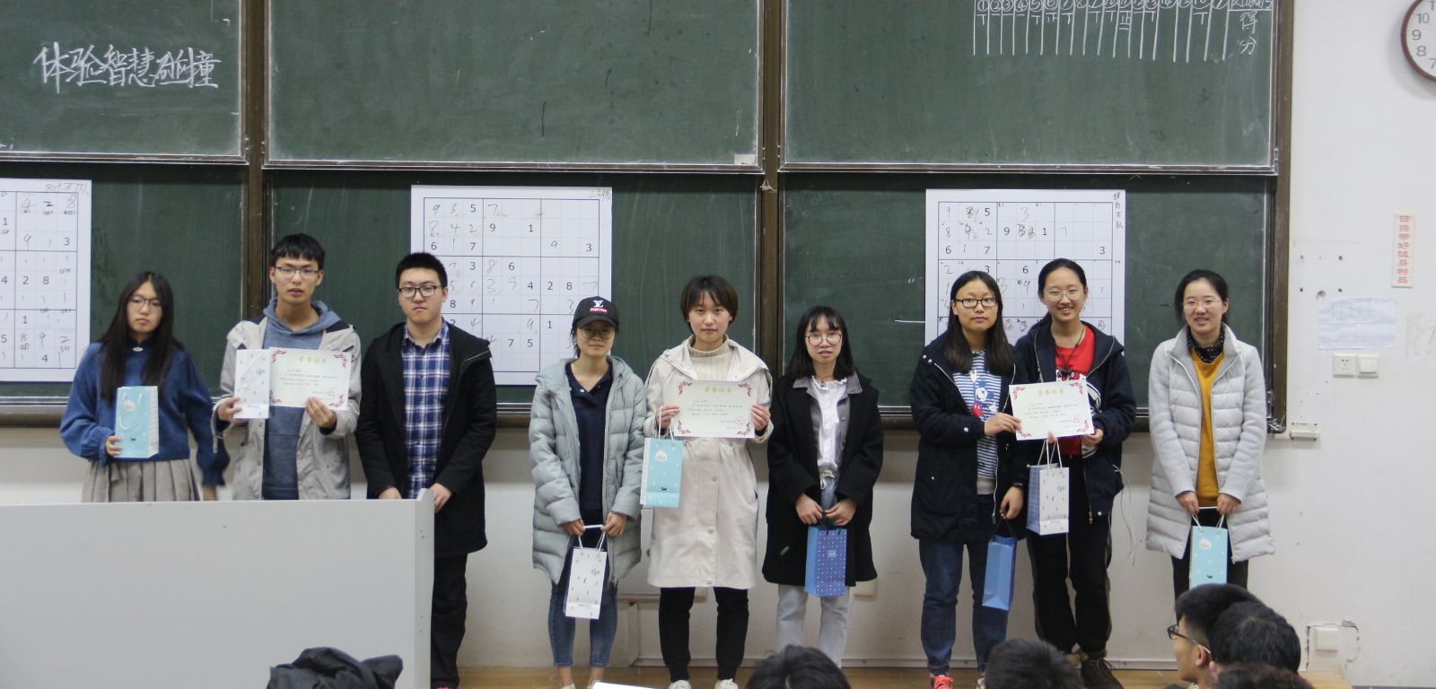 首先,卢晓燕向各参赛队伍介绍了比赛规则及注意事项。本次比赛共分三部分,第一部分是限时赛,包括4道数独题和3道填字题,得分占总成绩的60%。第二部分是趣味赛,每队领取一个立方体,立方体的六个面上贴着六道数独题,答案悬挂在教室前方的答案区域内。团队需合作填写立方体上的数独,并提交答案编号,本环节总分占总成绩的40%。比赛开始后,各队员争分夺秒、分工协作,有条不紊地进行答题。三十分钟后,比赛结束,所有团队结束答题。在互动环节,现场进行了有关甲骨文知识的抢答及字谜和歇后语的抢答,气氛活跃,卢晓燕为答对的同学发放了精美的小礼品。第三部分为展示赛,由前两个环节院内外得分第一的队伍与上一届冠军现场PK,对同一道题目回答正确且用时短的队伍获得终极大奖。最终,来自爱游戏ayx官方网站的“三剑客”队斩获一等奖和最具风采奖,2支队伍获得二等奖,3支团队获得三等奖。至此,本次填字数独大赛落下帷幕。