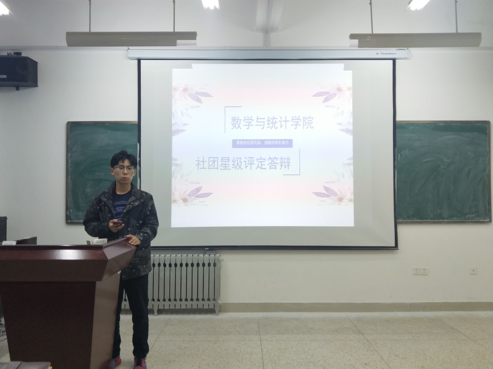 本站讯 2019年4月19日下午,爱游戏ayx官网于学院304教室组织开展了社团星级评定答辩活动。社团部全体成员,望言辩论社、本科生数学建模协会、统计调研协会与星梦圆协会的主要负责人和干事们到场参加。辅导员王祎璠、赵德豪和学生会秘书长李佳宣出席本次活动。