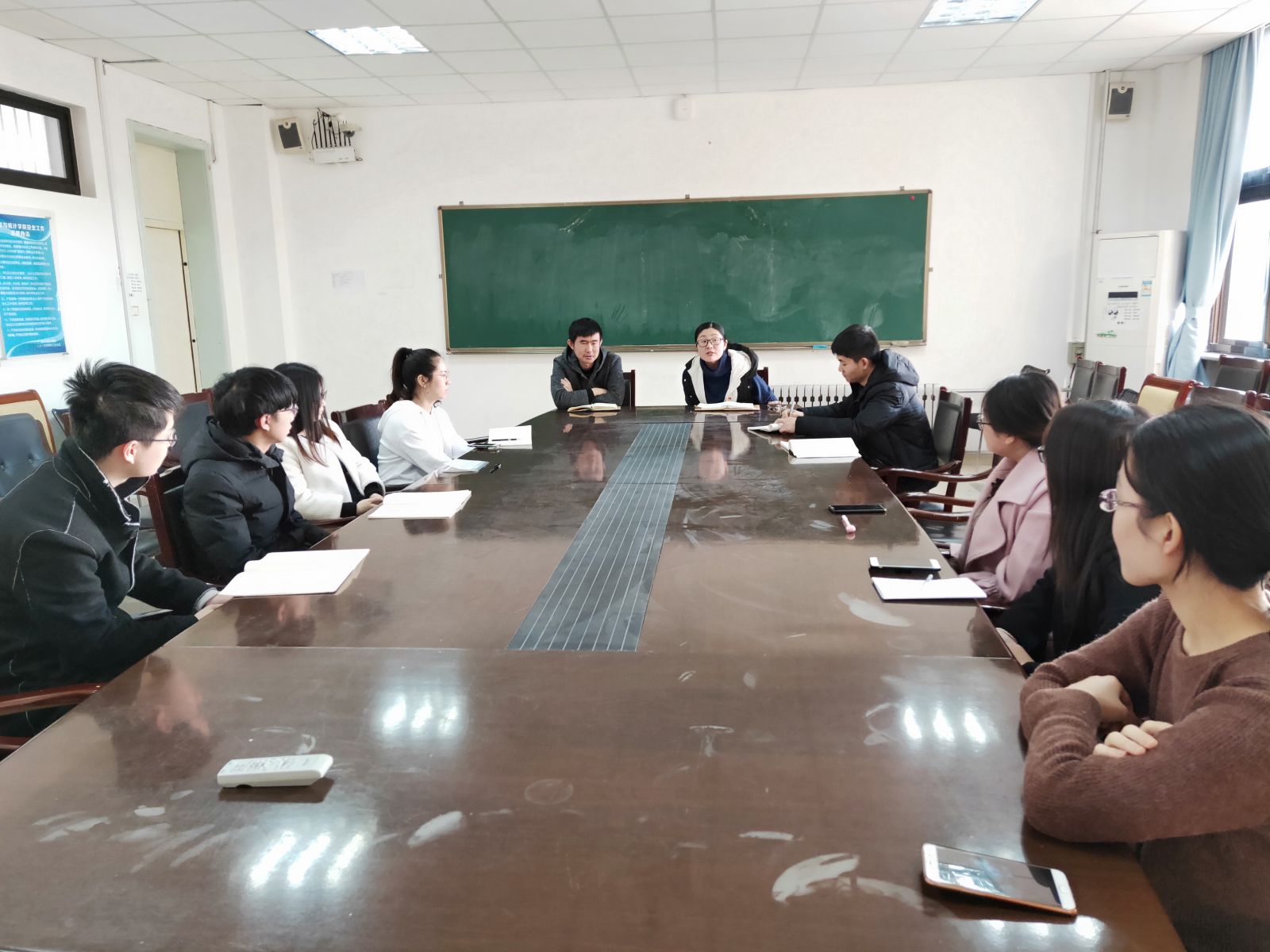 本站讯 为了解2019届研究生毕业生的就业状况及思想动态,为毕业生解决实际困难、提供帮助,并对新学期研究生工作进行部署,2019年3月13日上午9点,爱游戏ayx官网于图东环楼208召开研究生毕业生就业指导和安全教育工作会议。参加本次大会的人员有学院党委副书记王鹏飞、研究生辅导员孙磊、2019届全体研究生毕业生,会议由孙磊主持。