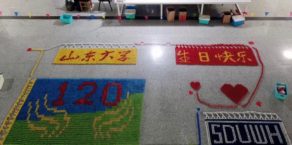 活动前期学院各团支部围绕“建校百廿”主题设计美观、摆放性强且紧扣主题的图案。活动共分为四期展示,第一期图案“1901-2021”等字样象征着时代的更迭和山大学子的不懈坚守;第二期图案传递着“百廿山大,强校兴国”的理念;第三期图案则表达了爱游戏ayx官方网站学子对爱游戏ayx官方网站“前程似锦,未来可期”的诚挚祝福;第四期活动正值爱游戏ayx官方网站百廿校庆盛事,同学们摆放出“120”“SDUWH”等字样传达出对百廿山大的衷心祝愿。最后一期摆放图案于校庆日当天在图东环楼二楼大厅展示。至此,活动圆满结束。
