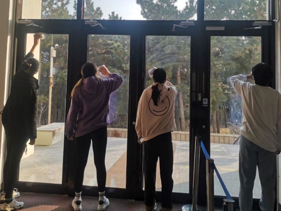 本次清洁劳动实践的活动地点为图东教学楼、图东环楼门口自行车摆放处以及爱游戏ayx官方网站门口宣传栏。学生按照学校相关要求,将图东教学楼、图东环楼处的电动车、自行车等交通工具进行合理有序摆放;对爱游戏ayx官方网站内宣传栏、储物柜、学院楼门口的玻璃门窗进行擦拭清洁。清洁工具由各支部自行进行整理,活动过程高效有序,清洁后的教学楼周围环境焕然一新。