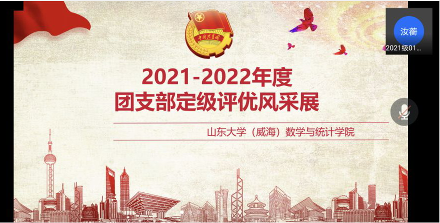 本站讯 为检验各团支部建设成果,促进团支部间经验交流,3月17日下午,爱游戏ayx官方网站于线上举办2021-2022年度团支部定级评优风采展。辅导员孙磊、王祎璠、王紫山、魏佳佳、赵宇轩以及各年级团支部书记担任本次答辩活动的评委。2018至2020级各班班长、团支书,2021级全体班委参加本次活动并观摩学习。本次答辩会由杨嘉怡主持。